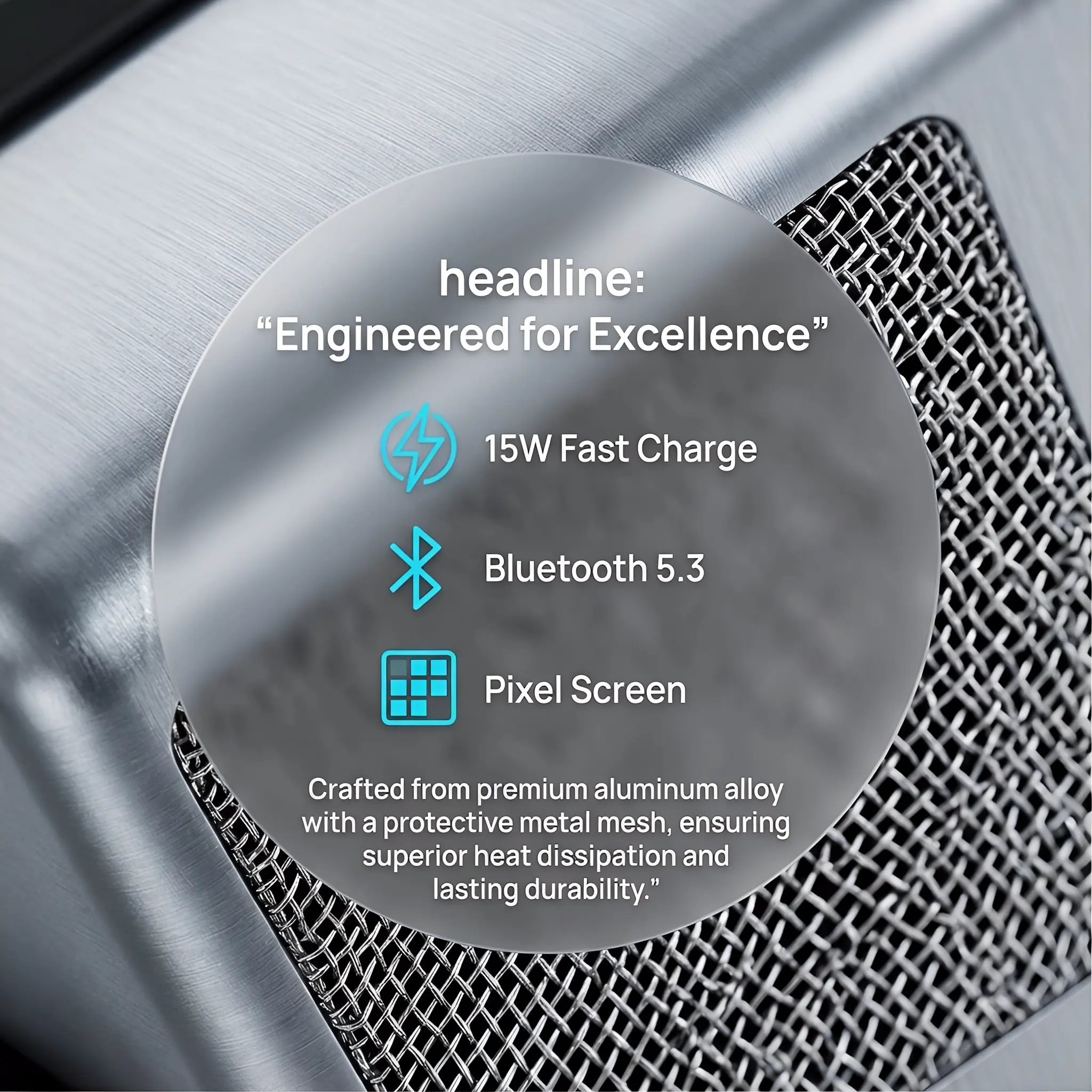 5. Thoughtful Details, Premium Build Aluminum alloy body with metal mesh for dust/ moisture resistance. Clear charging indicator and minimalist industrial style fits various settings.