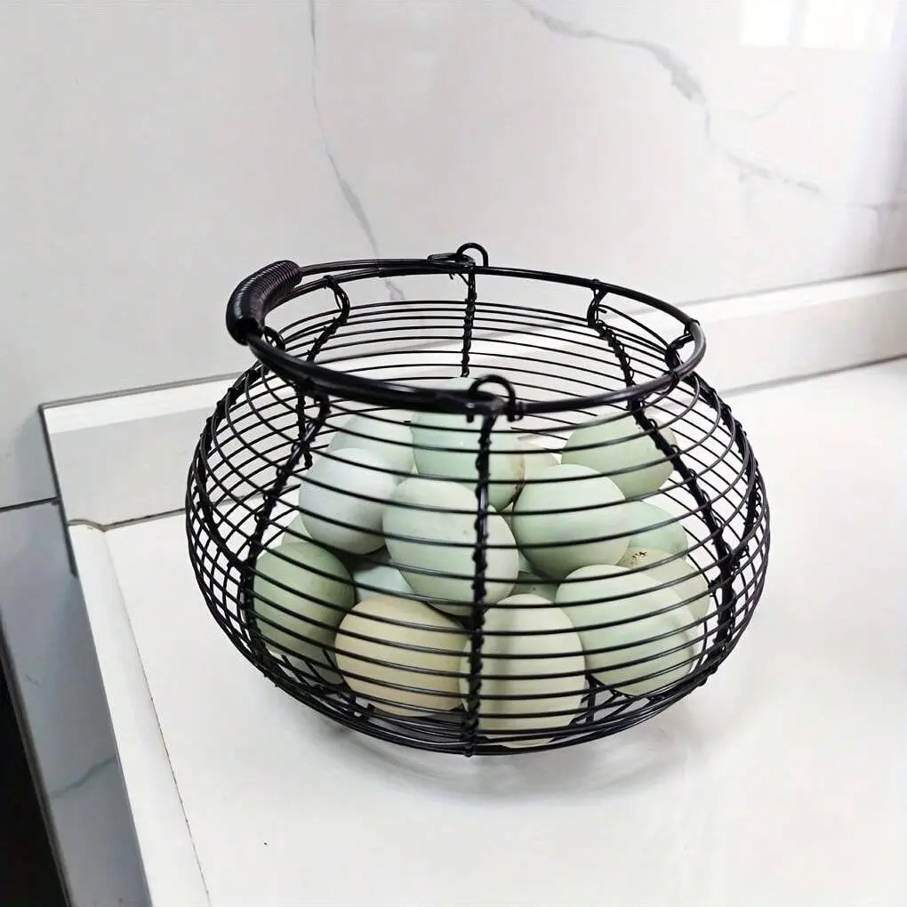 5. Round Woven Storage Basket, Durable Iron Craft Egg Carrier, Kitchen Fruit Snack Organizer, Living Room Desktop Junk Holder