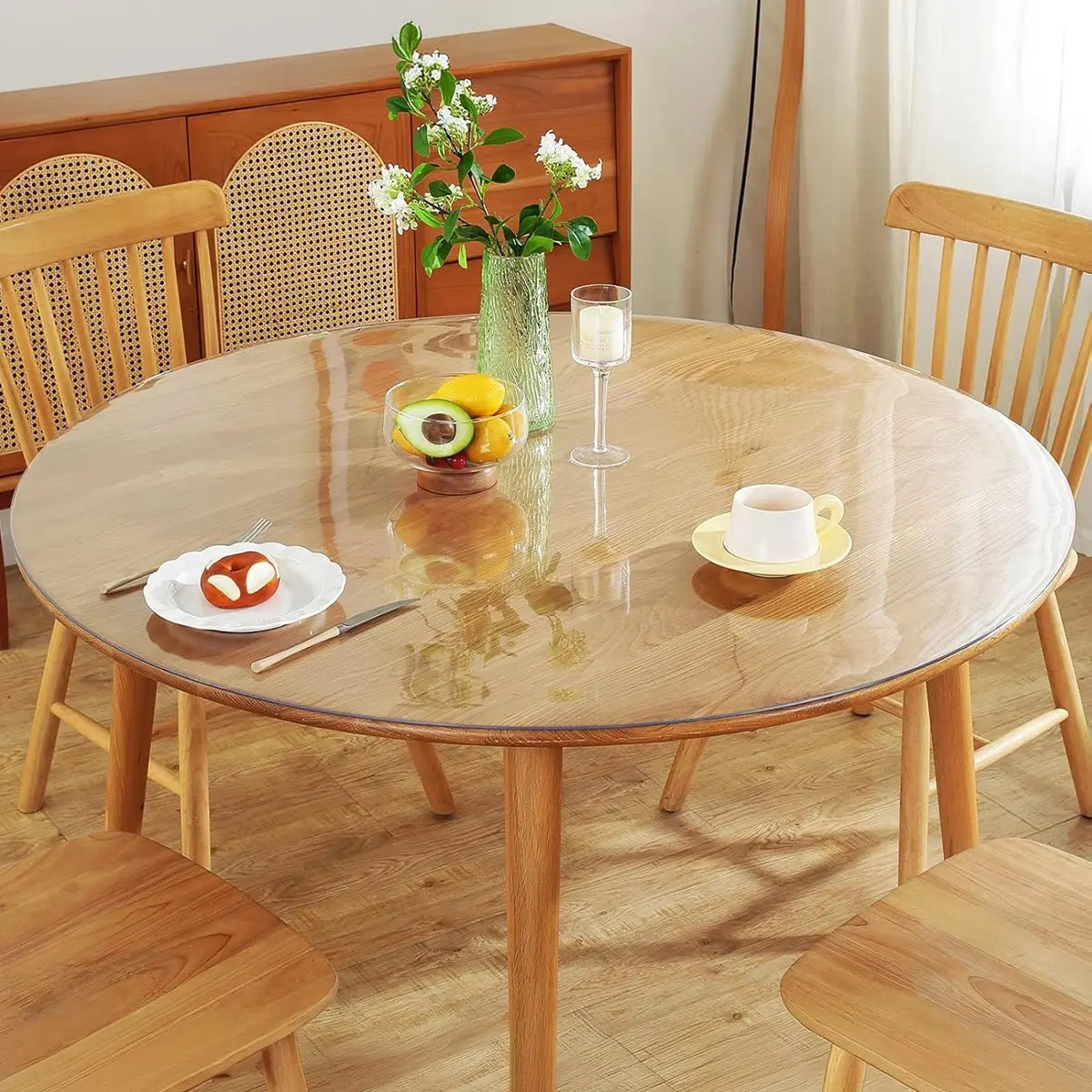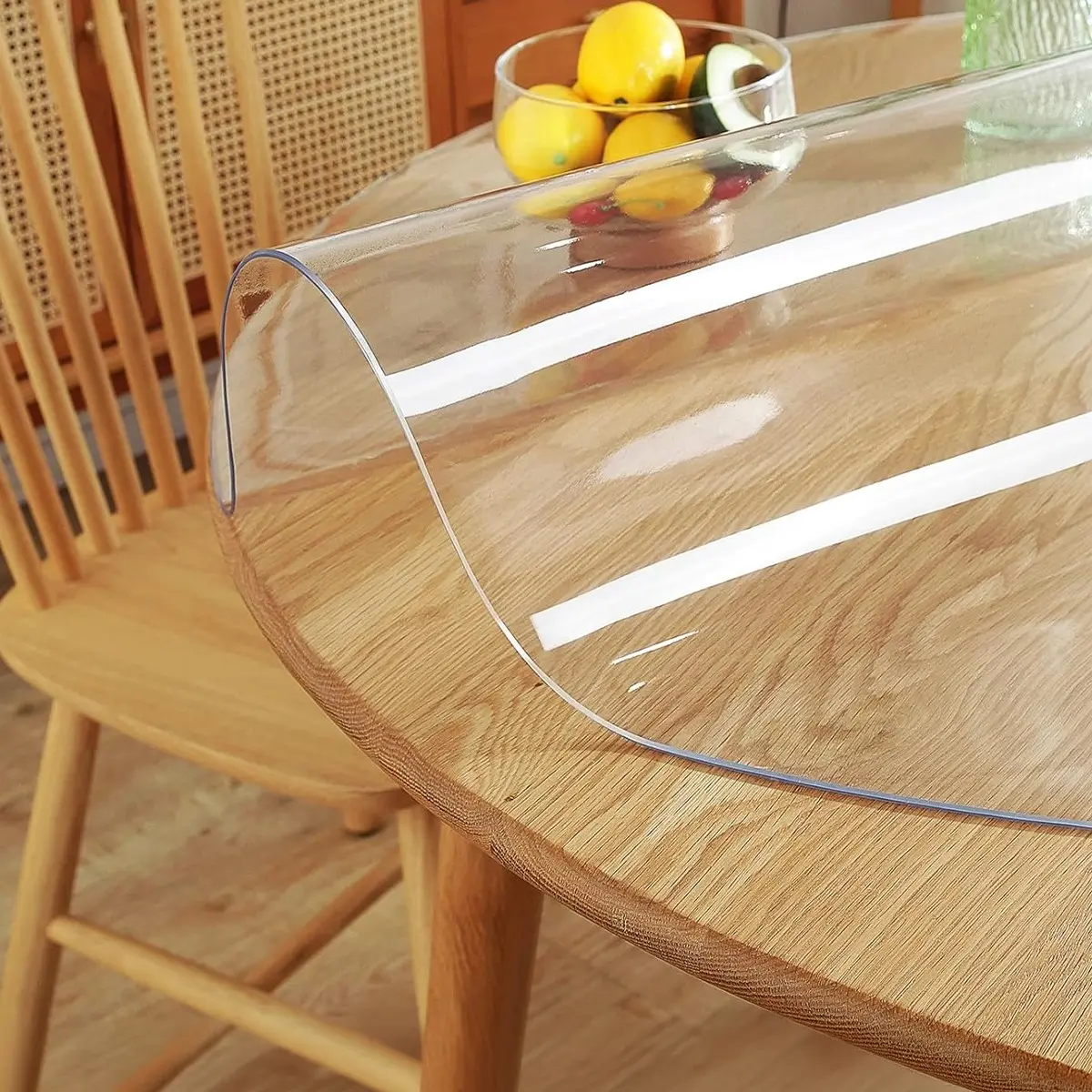 Soft Glass PVC Transparent Tablecloth, Waterproof Oil-Resistant Heat-Proof Easy Clean, Round Dining Table Mat, Coffee Table Protector Pad