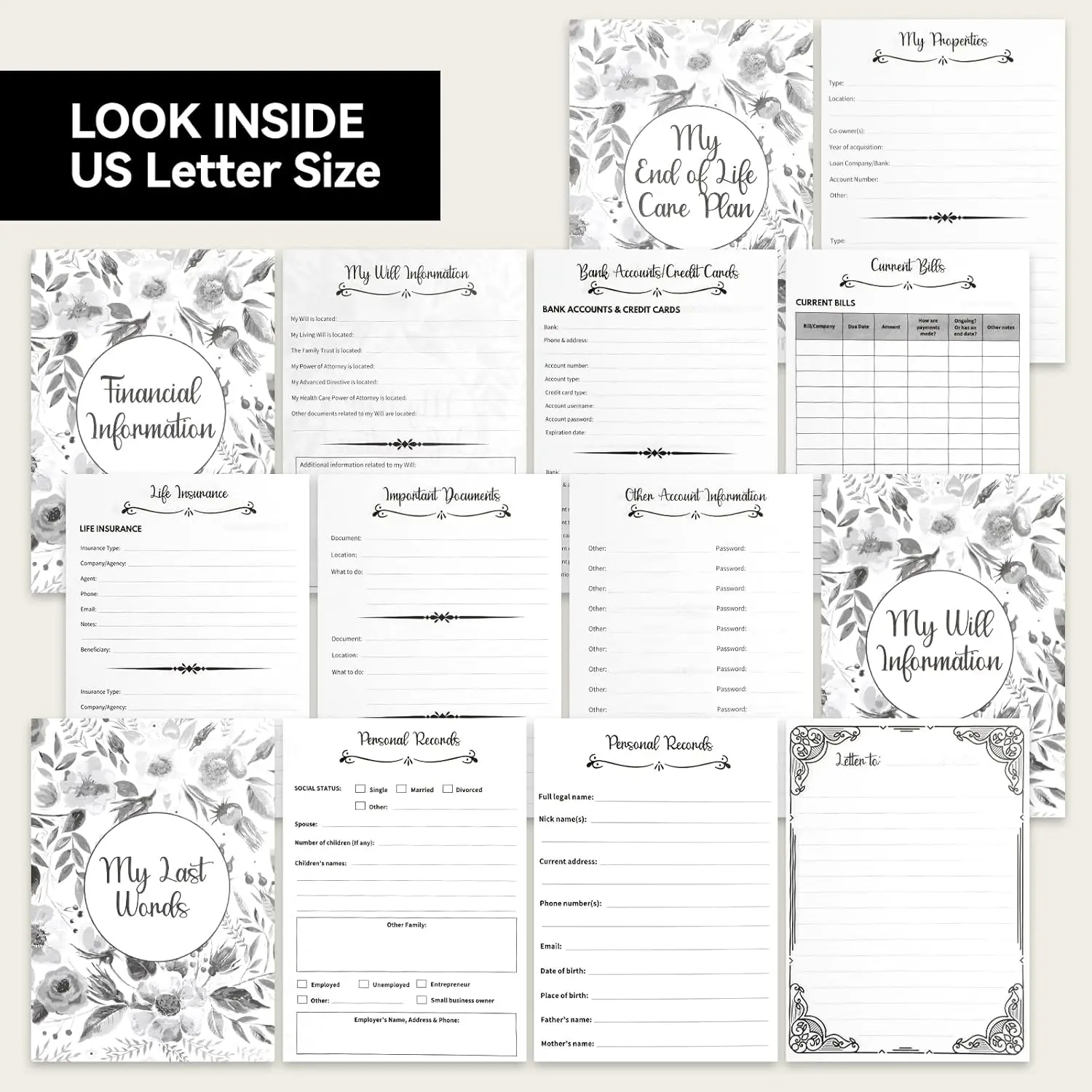 Guided filling: The End of Life Plan organizer's binder is designed to be easy to use, with clear sections and prompts to guide you through the entire process. This life book organizer is perfect for anyone who wants to organize things properly
