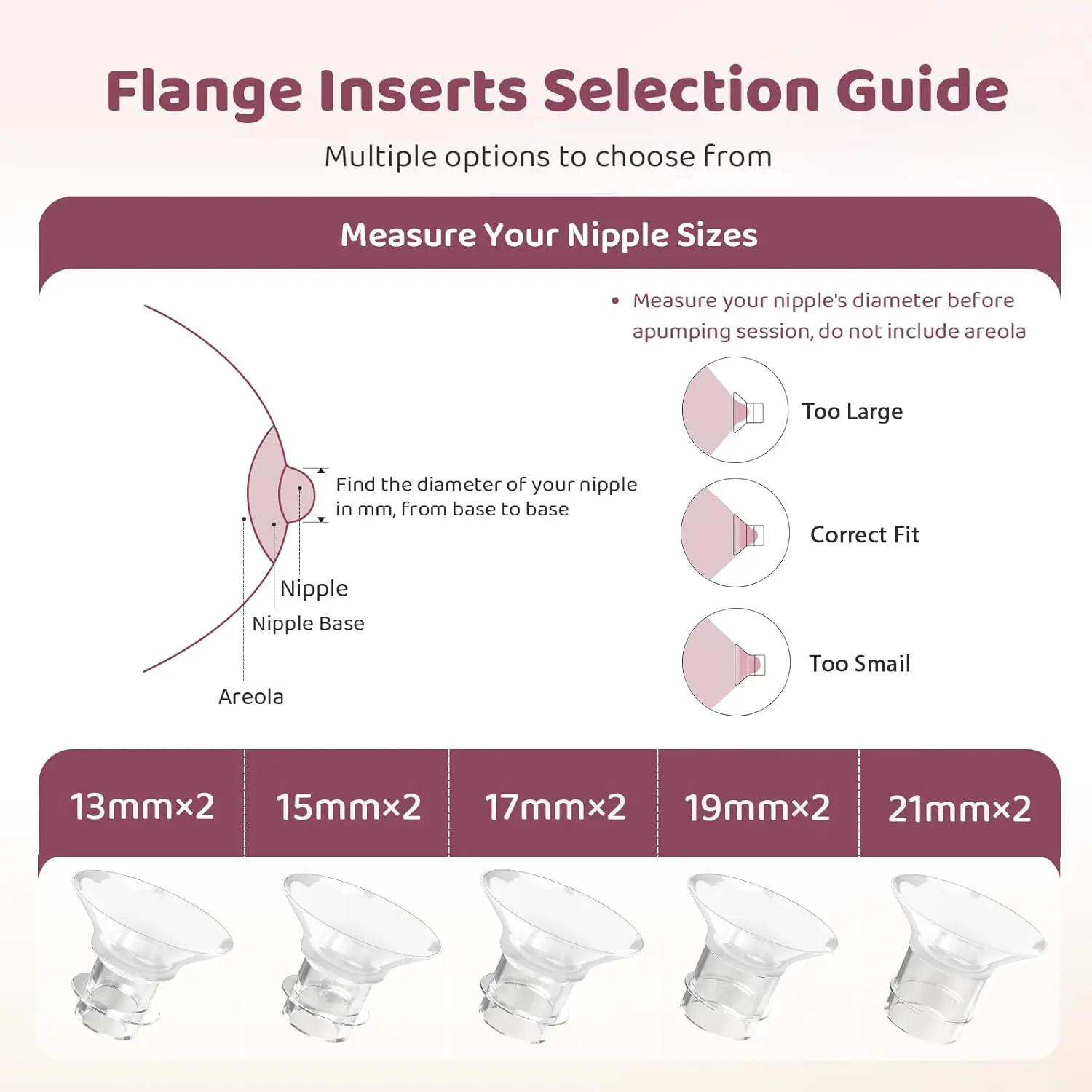 Kit 3 in 1 with 10PCS Flange Inserts 13/15/17/19/21mm, Silicone Flanges Insert Kit for 24mm Flange/Shield, Pumping Essentials Kit for Moms