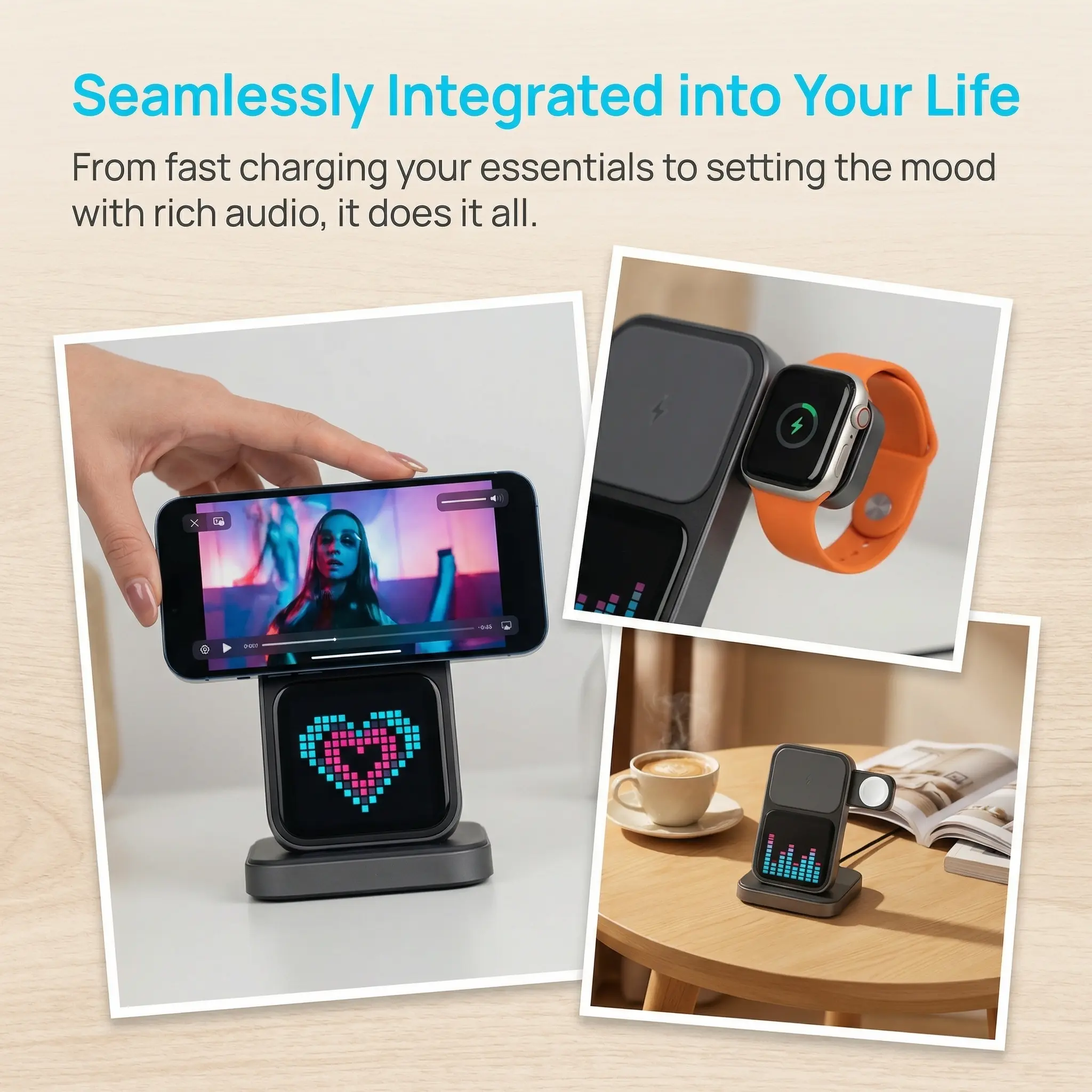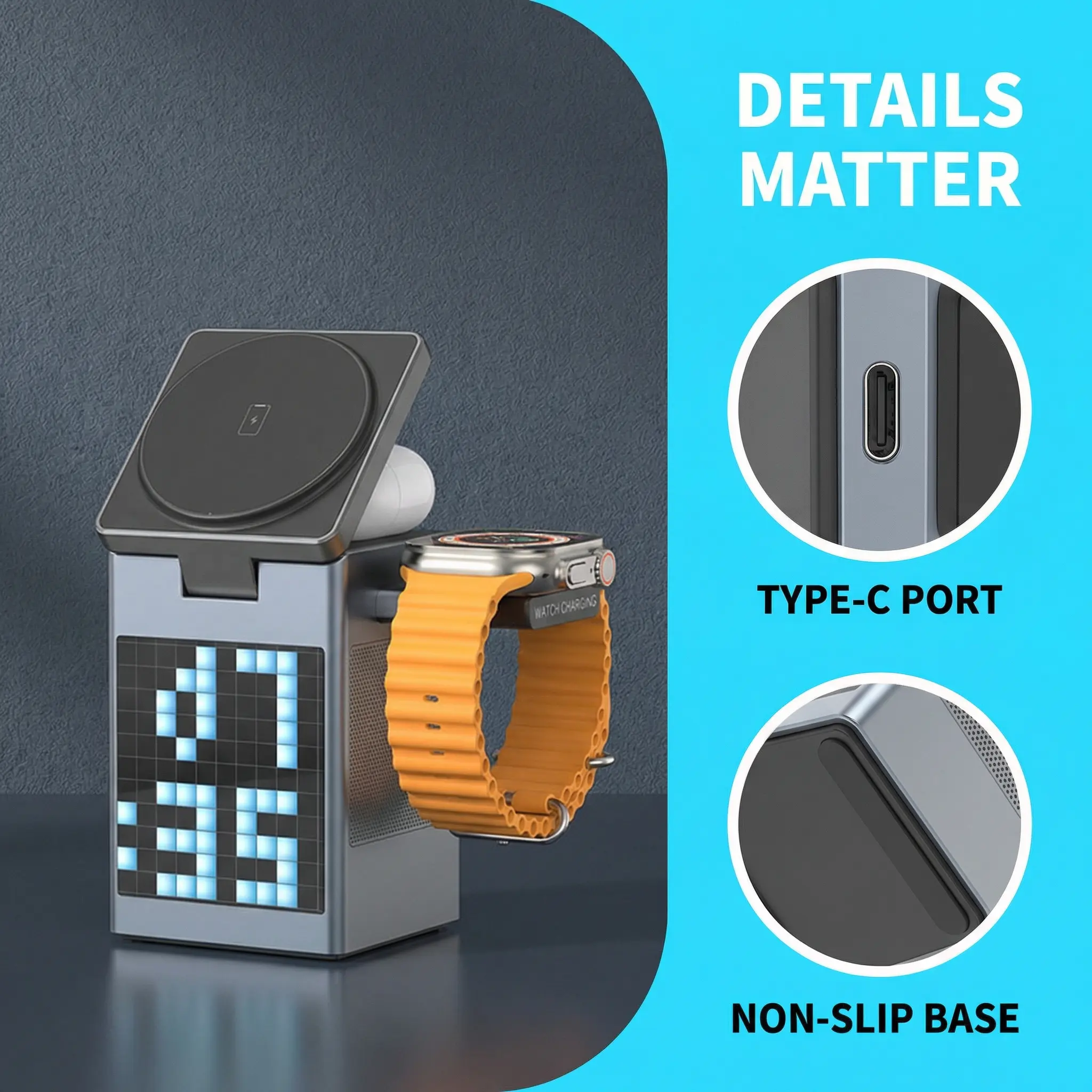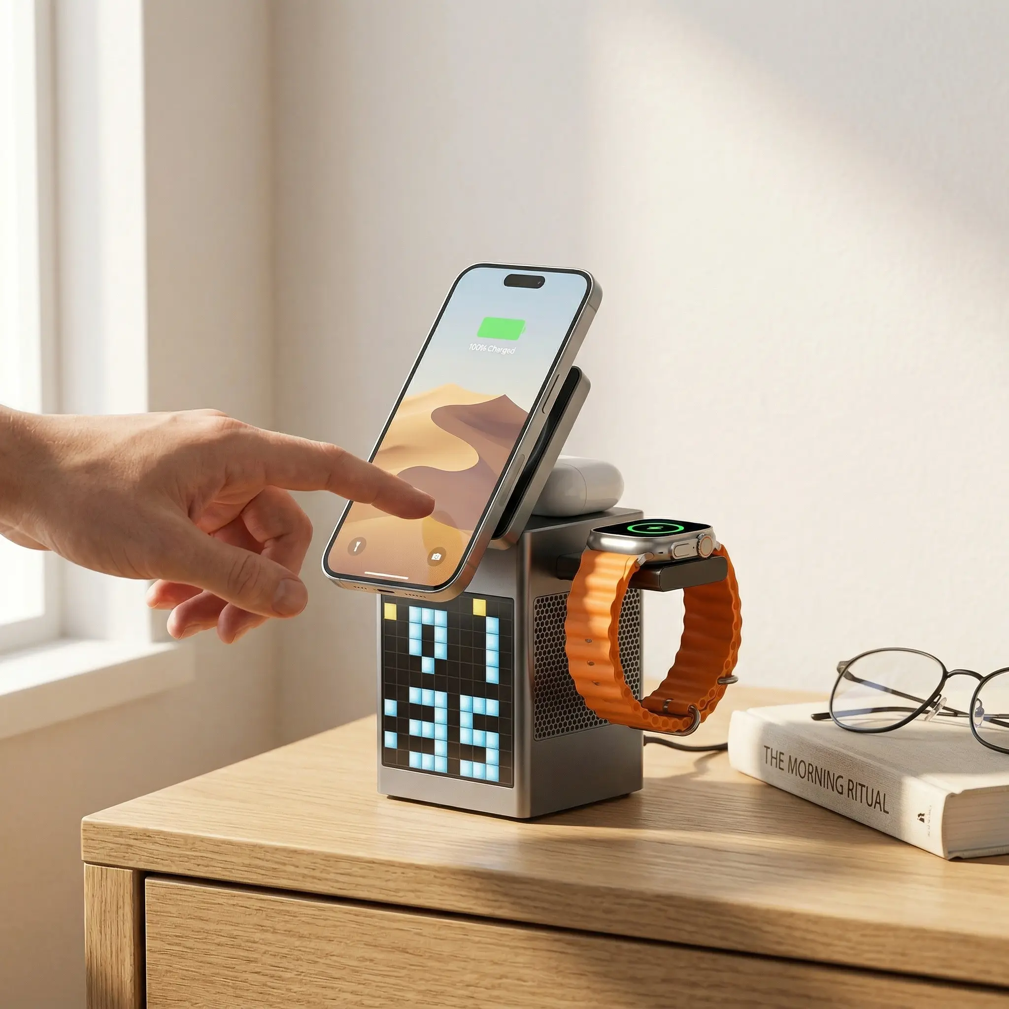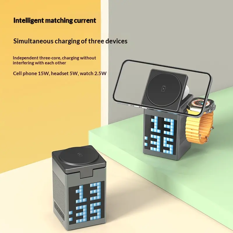 3. Speaker + Clock for Better Trips Bluetooth speaker for travel music. Silent clock for hotel rooms. Pixel screen for personal flair.