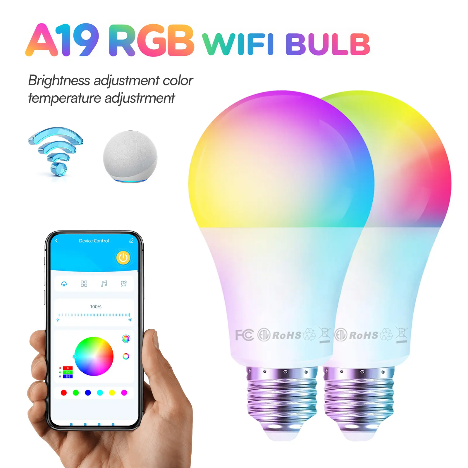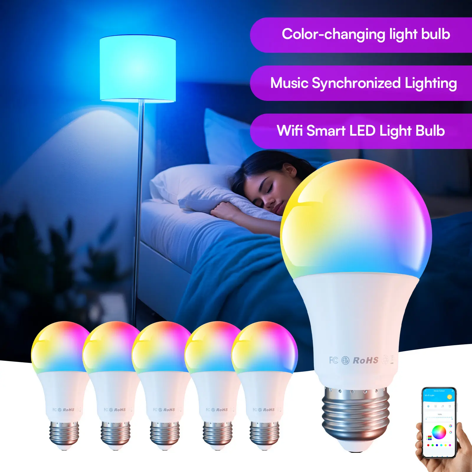 DAYBETTER Smart Light Bulbs 16 Million Colors RGBCW WiFi Bluetooth LED A19 800 Lumens Music Sync Voice Control Group Timer Function