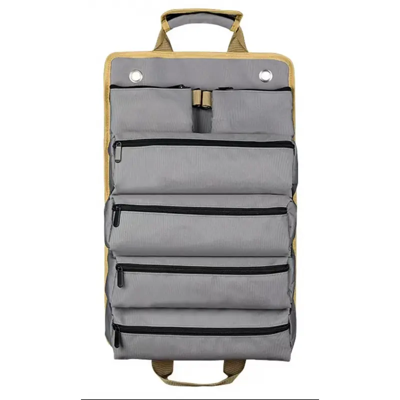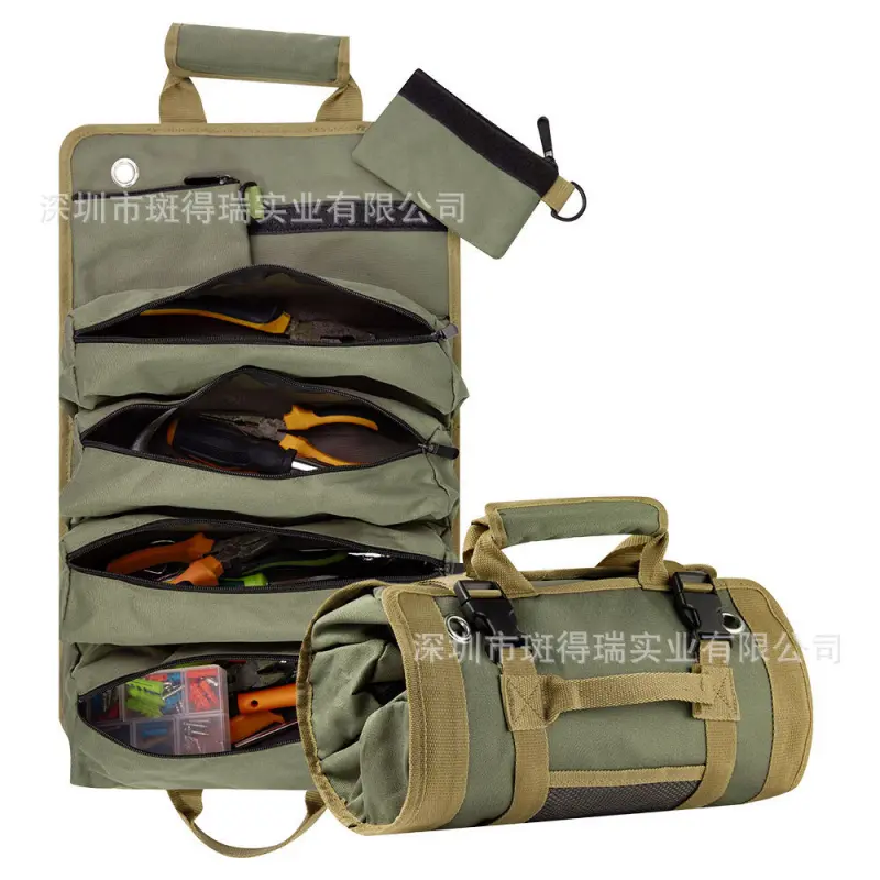 Portable Foldable Roll Up Tool Bag, Heavy Duty Tool Organizer Bag with 5 Compartments & 2 Detachable Pouches for Tools Storage, Waterproof Tool Roll Bag for Dad Men Electrician Mechanic Gifts