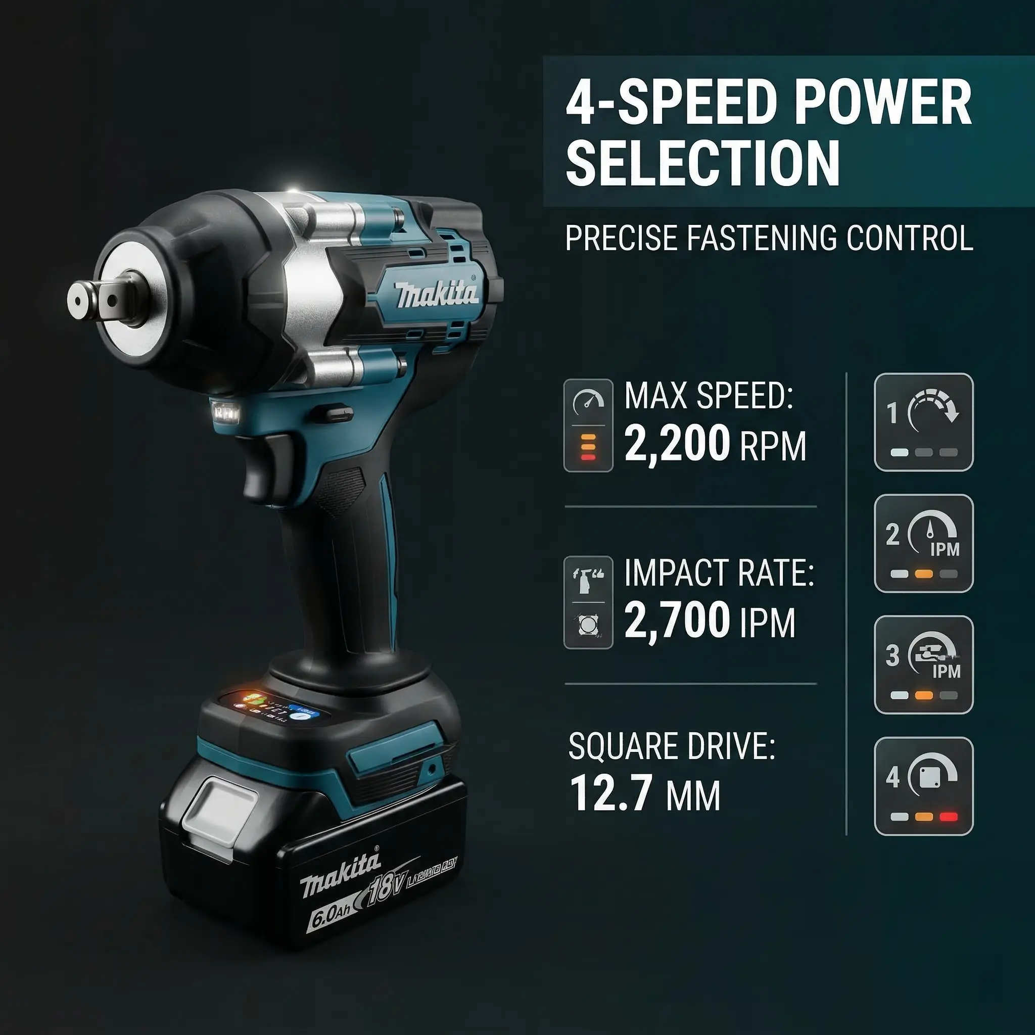 Makita 700 1/2 In Impact Wrench High Torque 1000 Nm Breakaway for Construction and Equipment Assembly Use