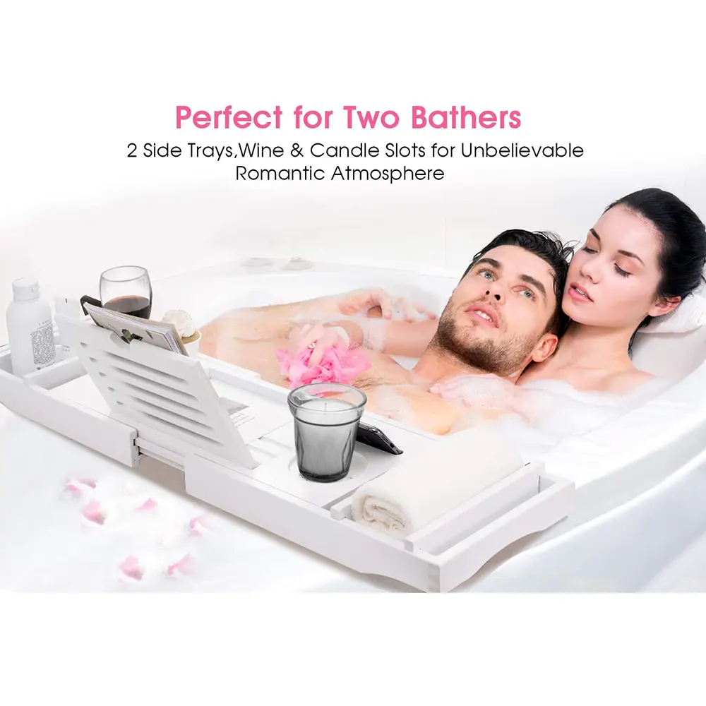 RELAX IN BATH TIME: Create a luxury at-home spa with our beautifully-designed adjustable bath tray for tub. Melt your cares away pampering yourself in a relaxing bath with this tub tray and any bathtub accessory you desire!