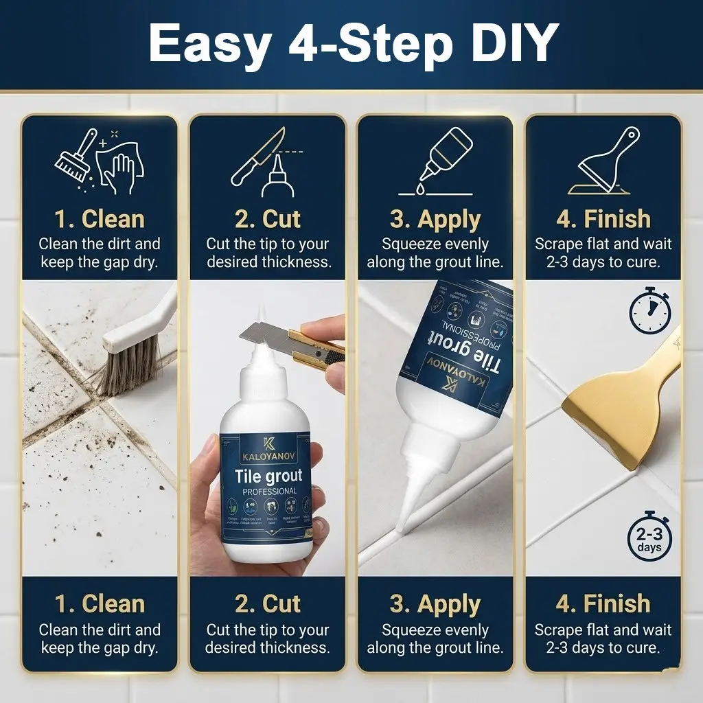 Professional Tile Grout Waterproof Anti-Fungal Gap Filler Bathroom Floor Joint Caulking Sealant DIY Home Repair Paste Tube 150ml