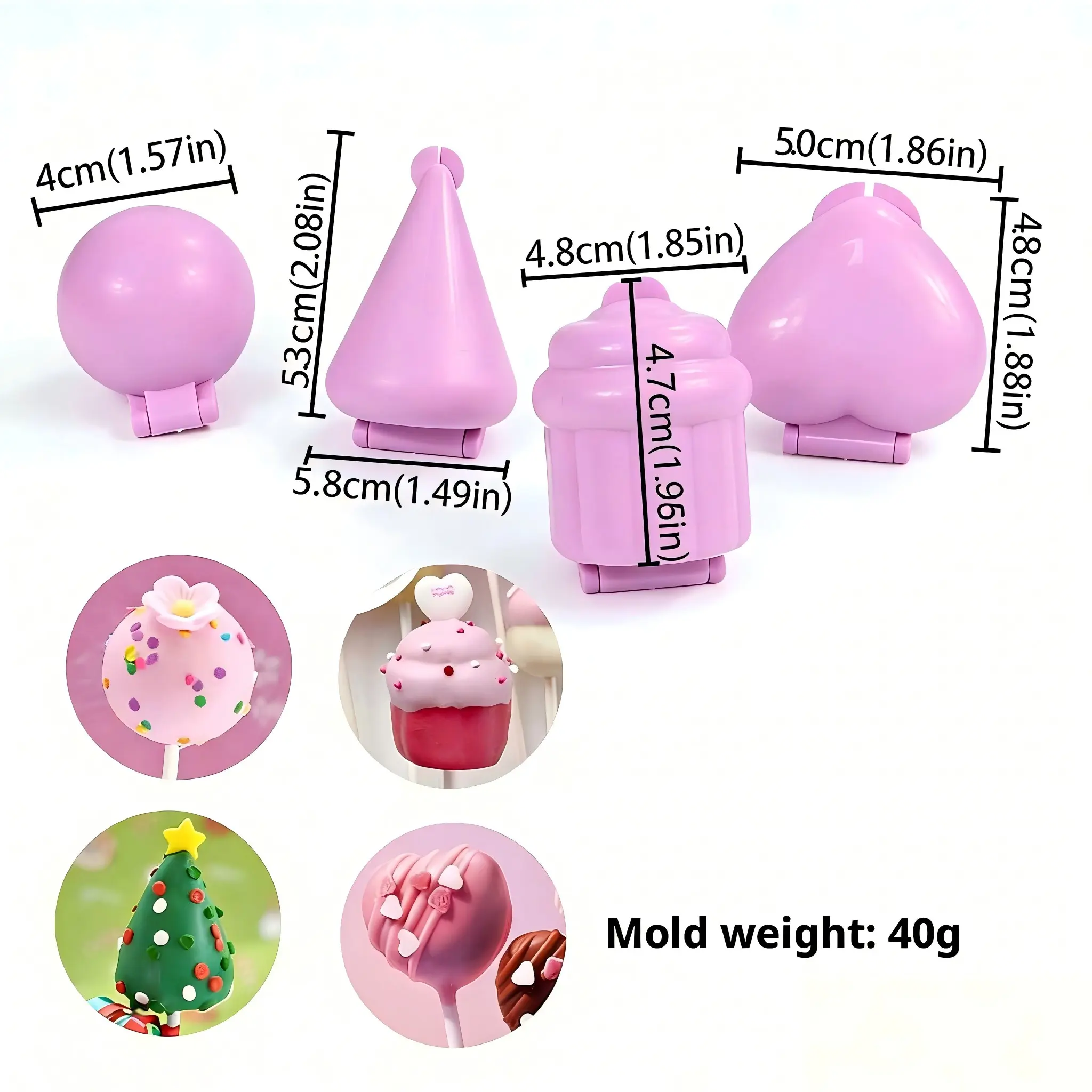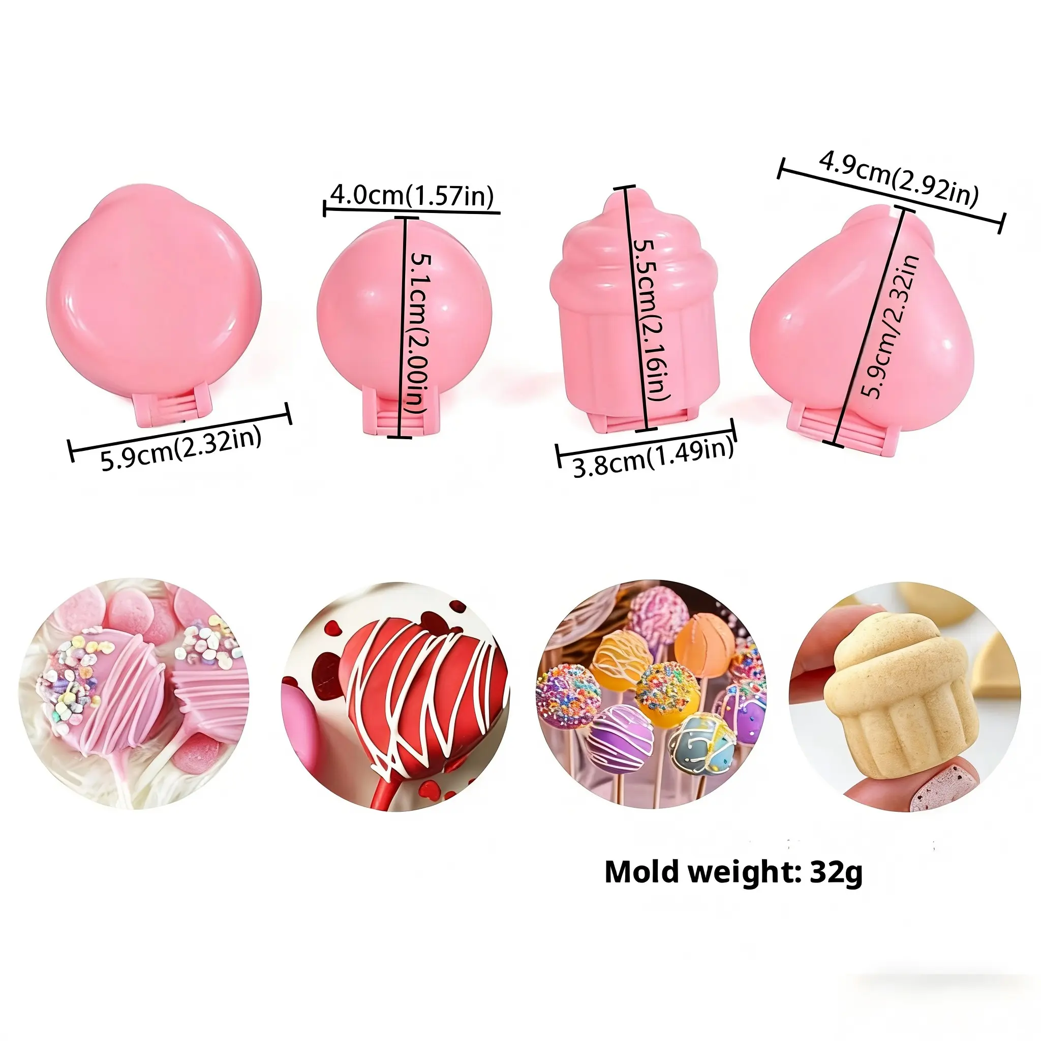 8Pcs Cake Pop Molds Set, Reusable Mold, Ball Heart Round Cupcake Molds with Squeeze Tool, Mini Cakes for Home Baking Birthday Wedding Desserts