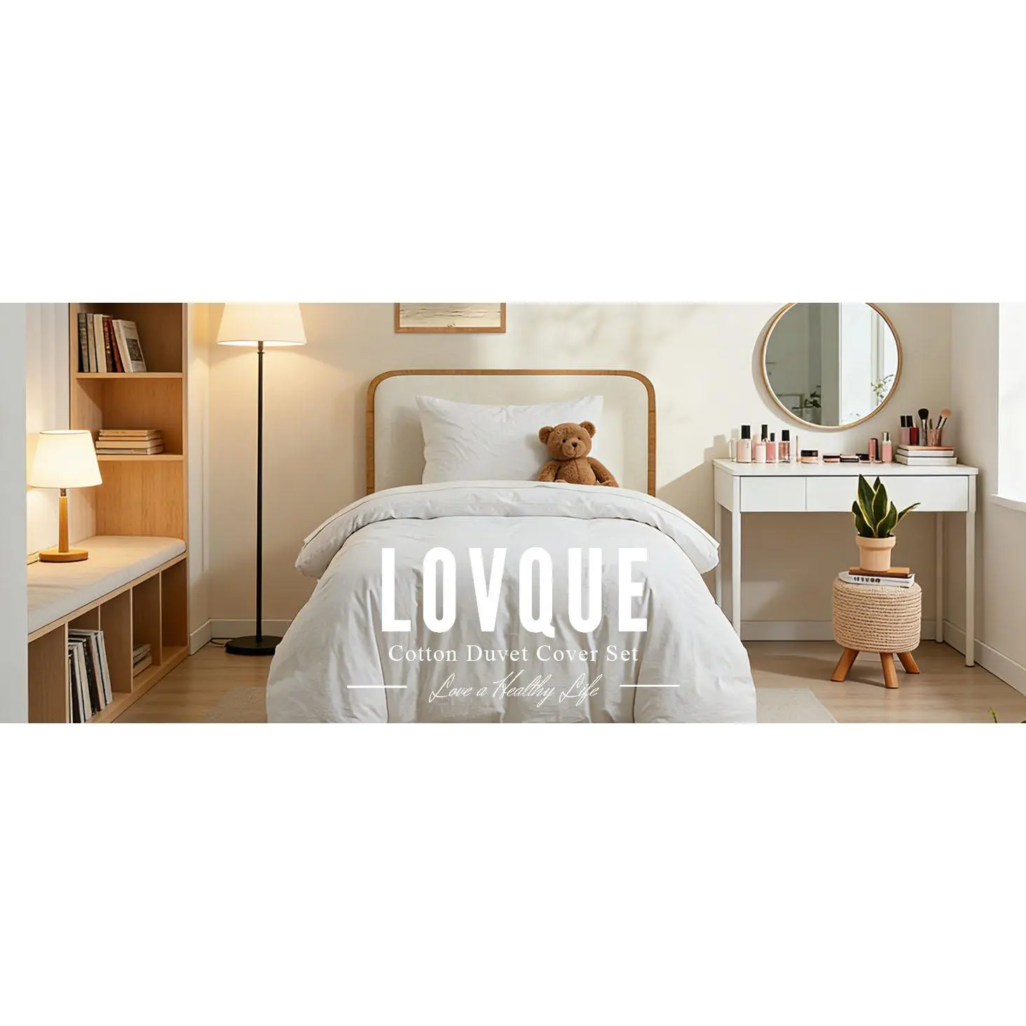 Our Duvet Cover Set, made from 100% washed cotton, offers luxurious comfort, breathability, and skin-friendliness for a deep, hypoallergenic sleep.