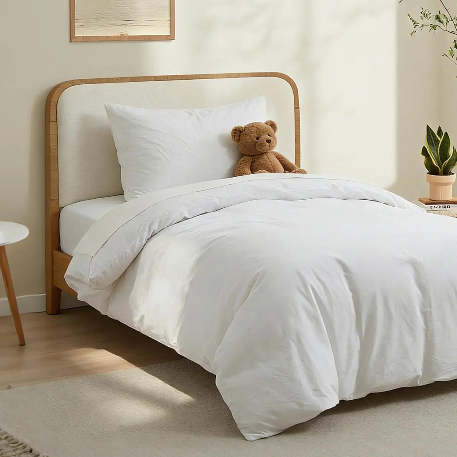 100% Washed Cotton Duvet Cover Twin Size,-Like Textured White Fade-Resistant Natural Bedding Set (No Comforter), 68x90 Inches