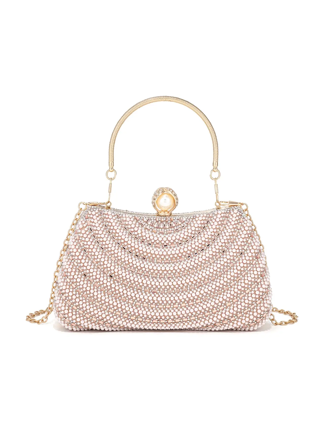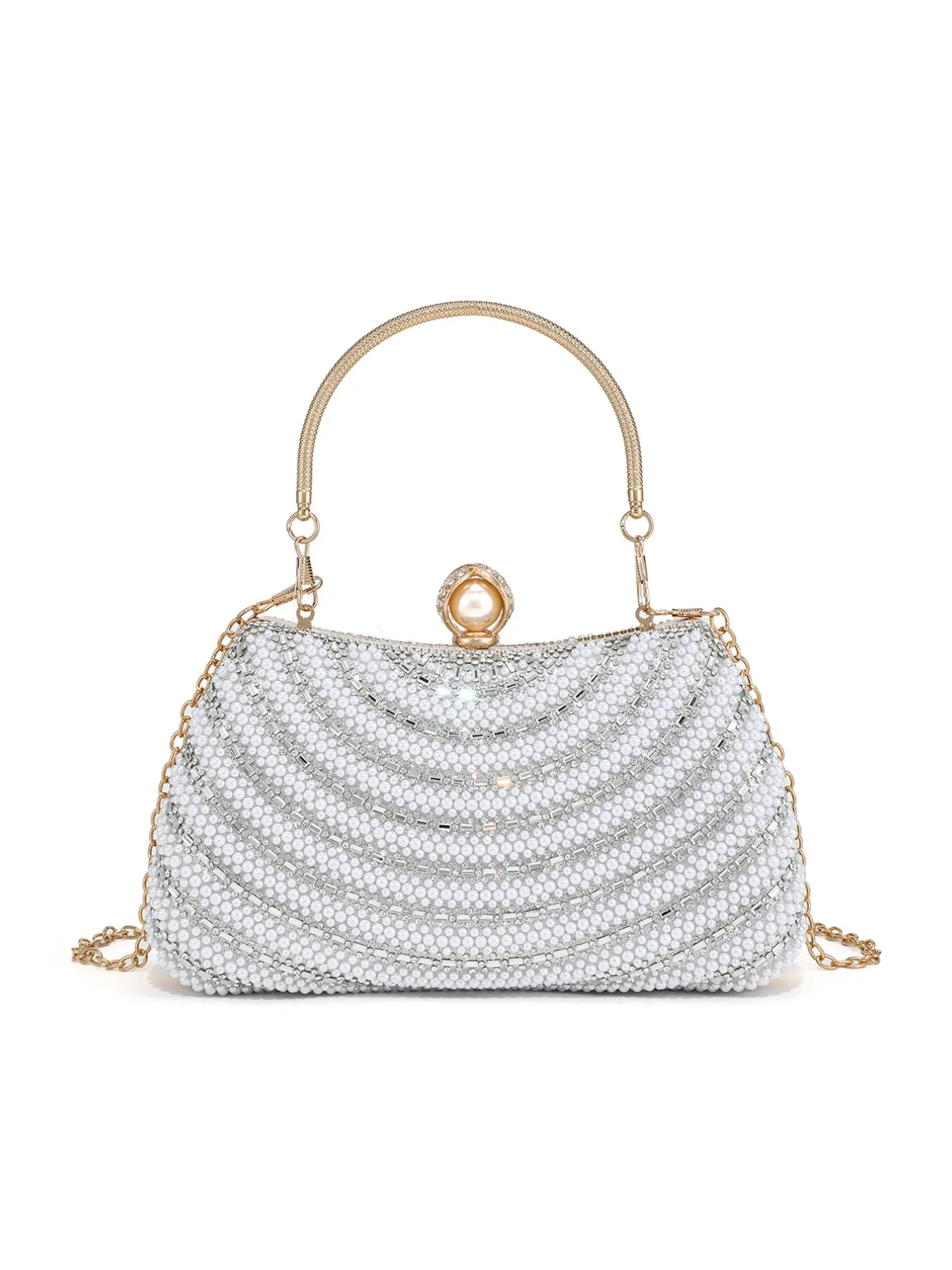 Elegant Pearl Rhinestone Handbag, Evening Party Wedding Bag, Sparkling Chain Design, Luxury Women's Clutch, Perfect for Special Occasions