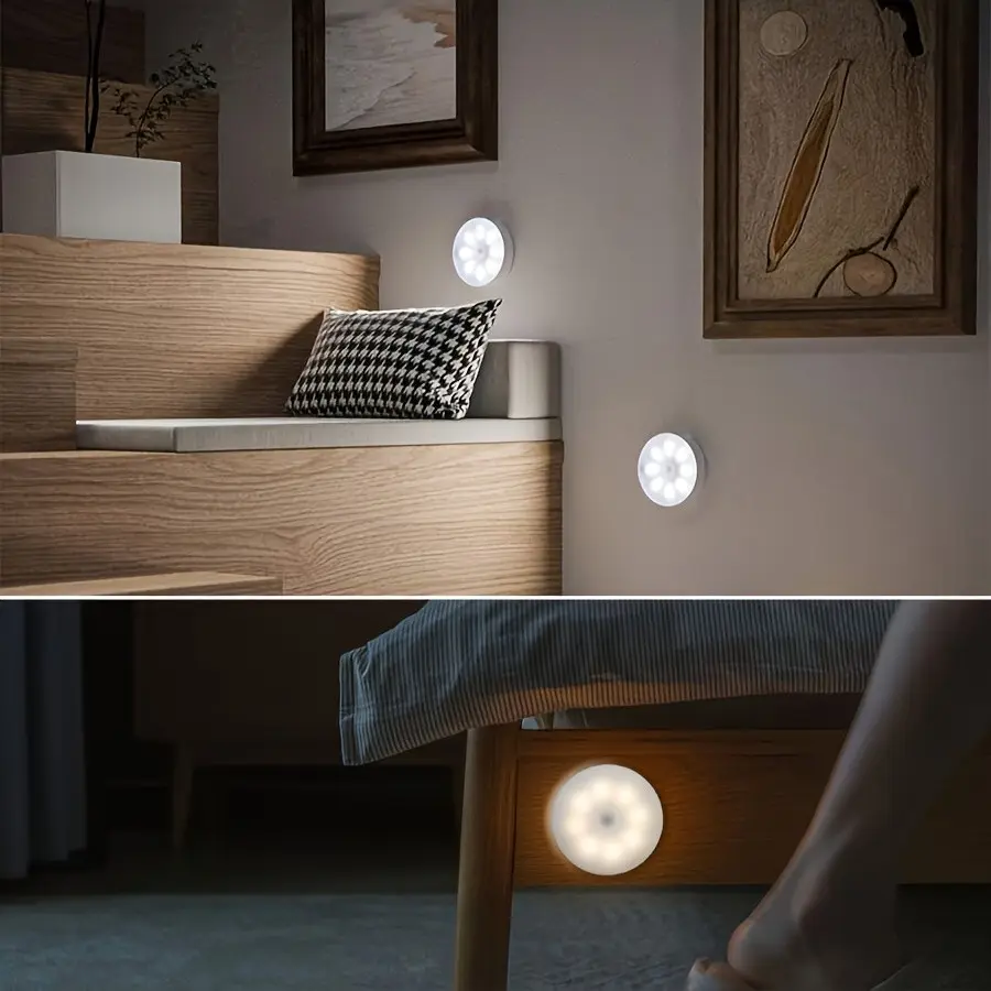Small sensor LED light for student dormitories, (white light/warm light) wireless installation, USB rechargeable light, human body sensor automatic switch (night mode), LED light source, suitable for beds, corridors, kitchens, living rooms, bedrooms,