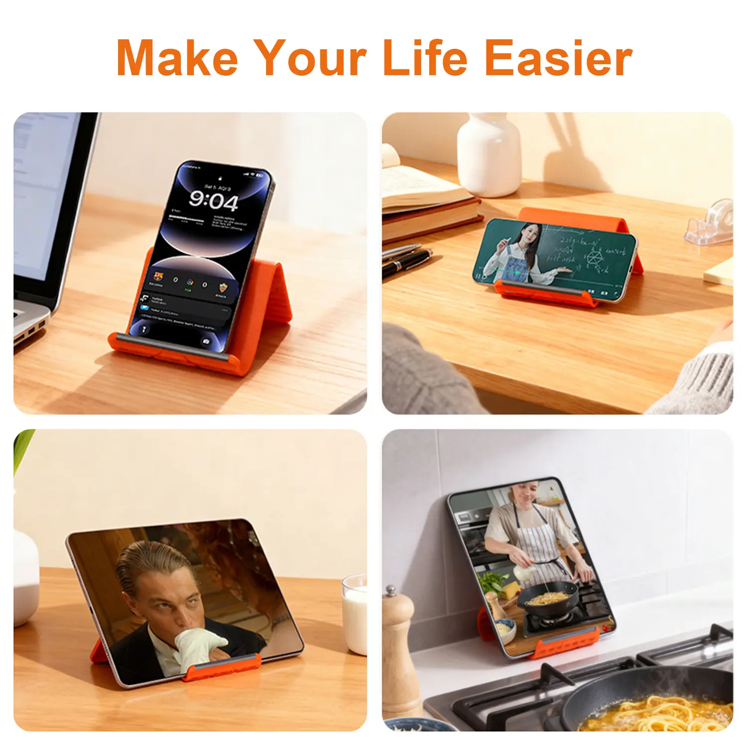 [Material]: The stand is crafted from high-quality, soft silicone that is flexible and foldable; it provides sturdy support for your device without causing any scratches.