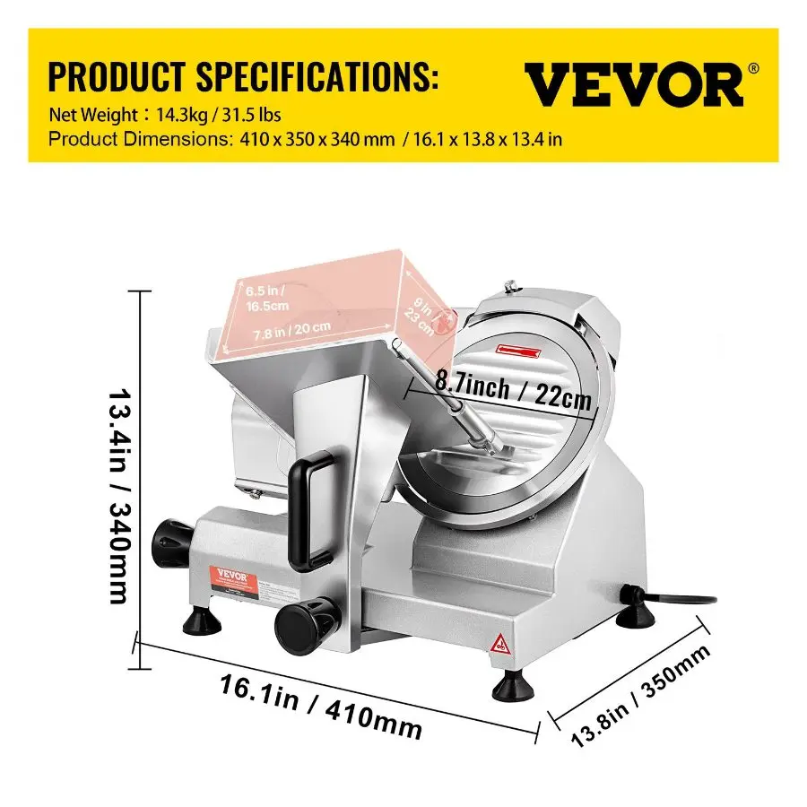 VEVOR Commercial Meat Slicer, 200W Electric Deli Food Slicer, 350-400RPM Meat Slicer with 8 Carbon Steel Blade, 0 - 0.47 inch Adjustable Thickness Electric Meat Slicer for Home and Commercial Use