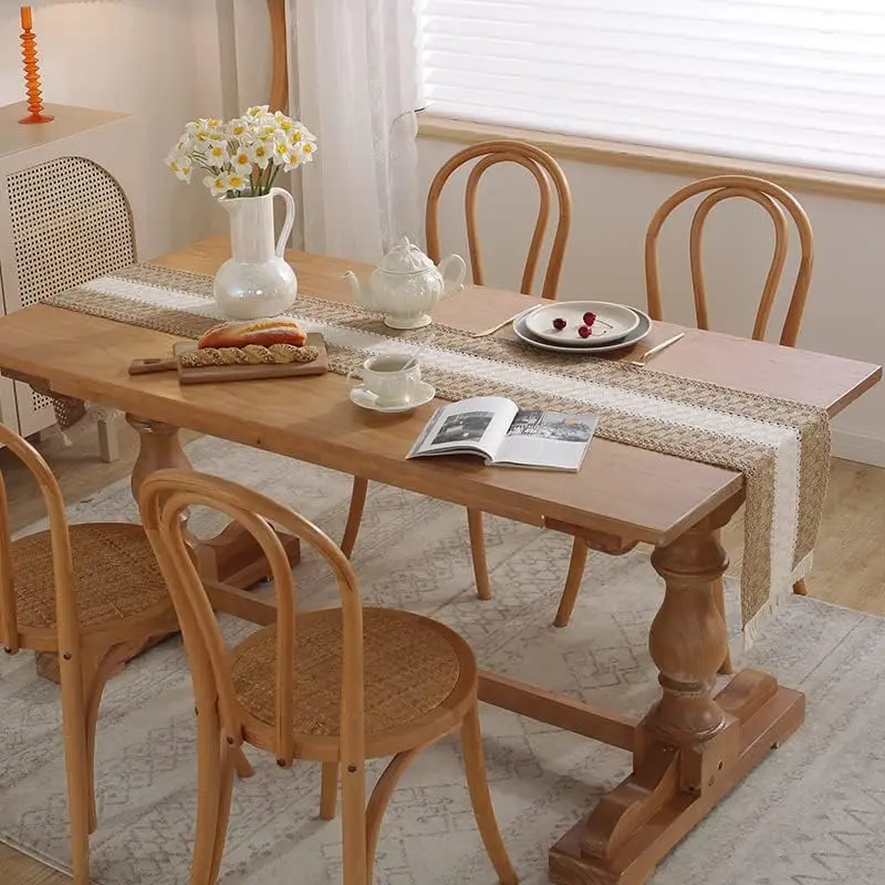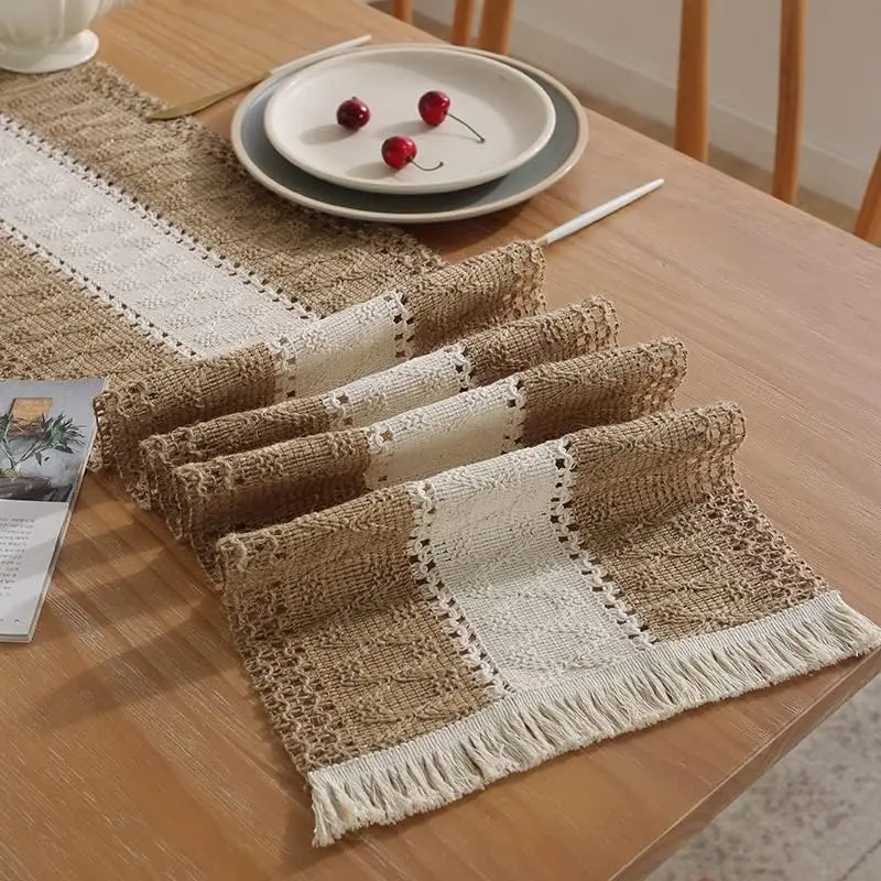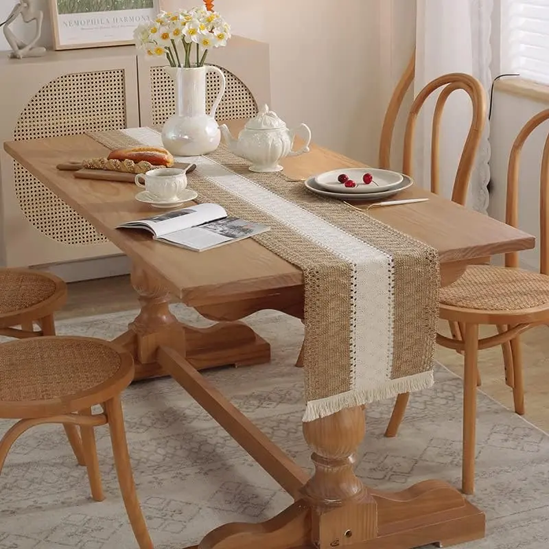 12''x108'' Boho with Tassels for Home, Farmhouse Rustic Burlap Table Decoration for Living Room
