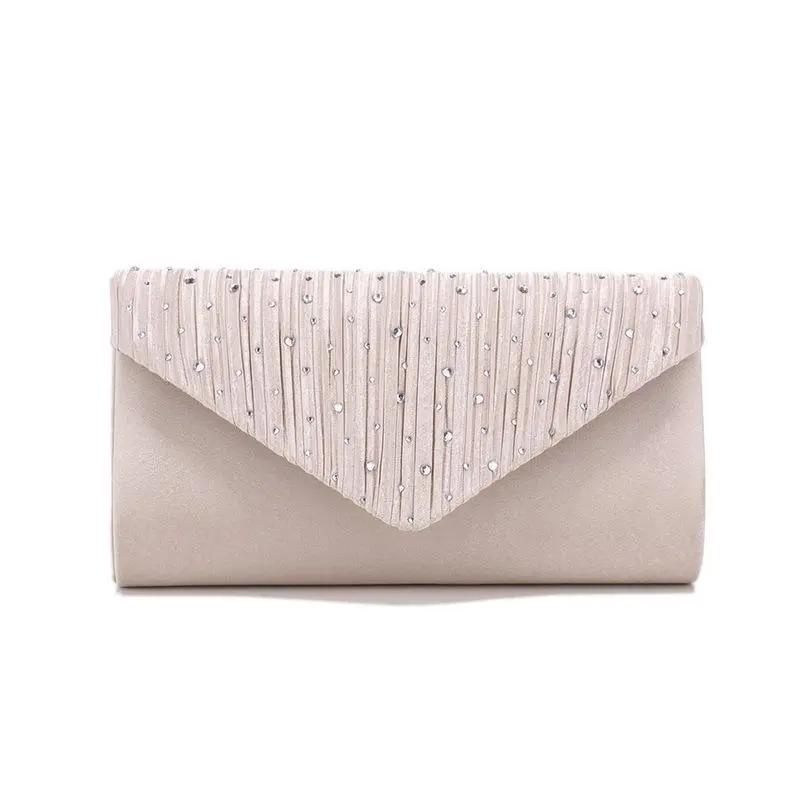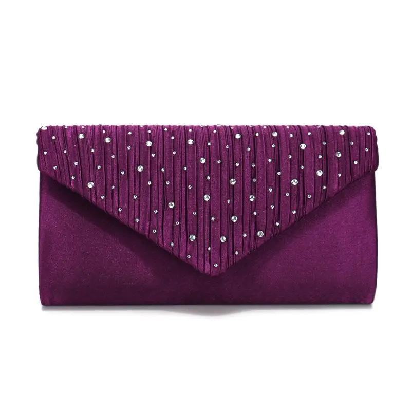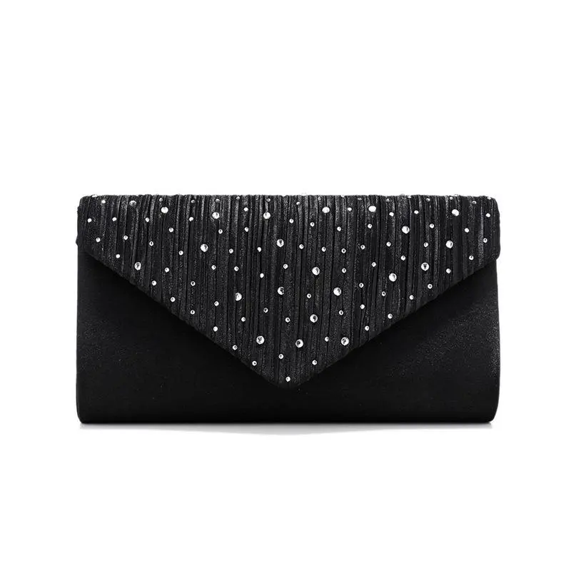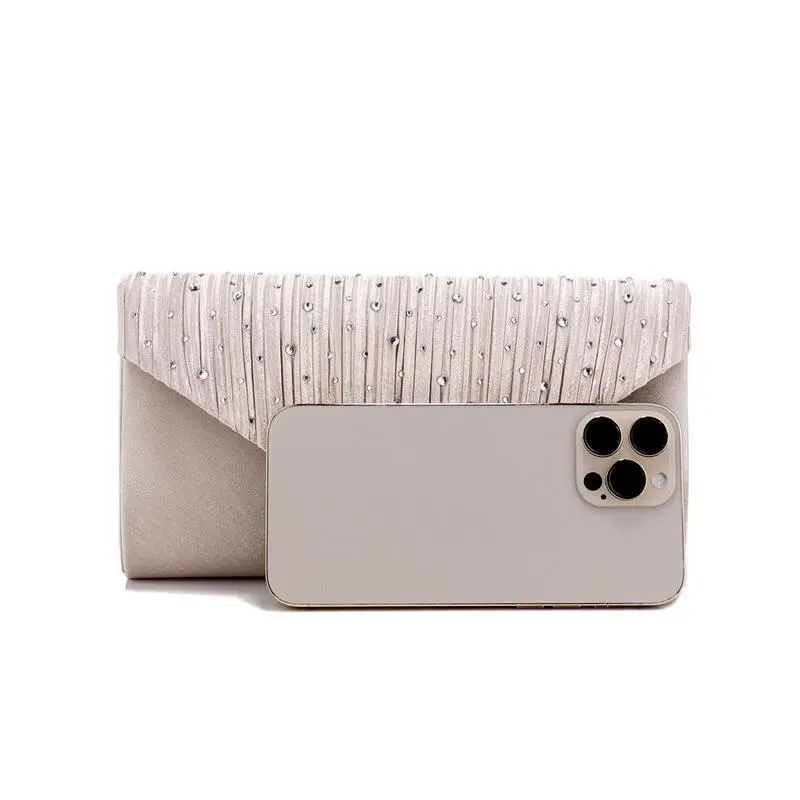 Trend Sparkling Diamond Setting Evening Bag, Fashion Pleated Satin Cloth Envelope Clutch Bag Banquet Dress Evening Bag