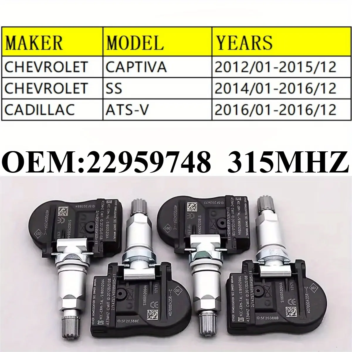 1Pcs/4Pcs TPMS/Tire Pressure Sensor OEM#22959748 #315MHZ For #CHEVROLET:CAPTIVA(2012/01-2015/12) SS(2014/01-2016/12) #CADILLAC:ATS-V(2016)