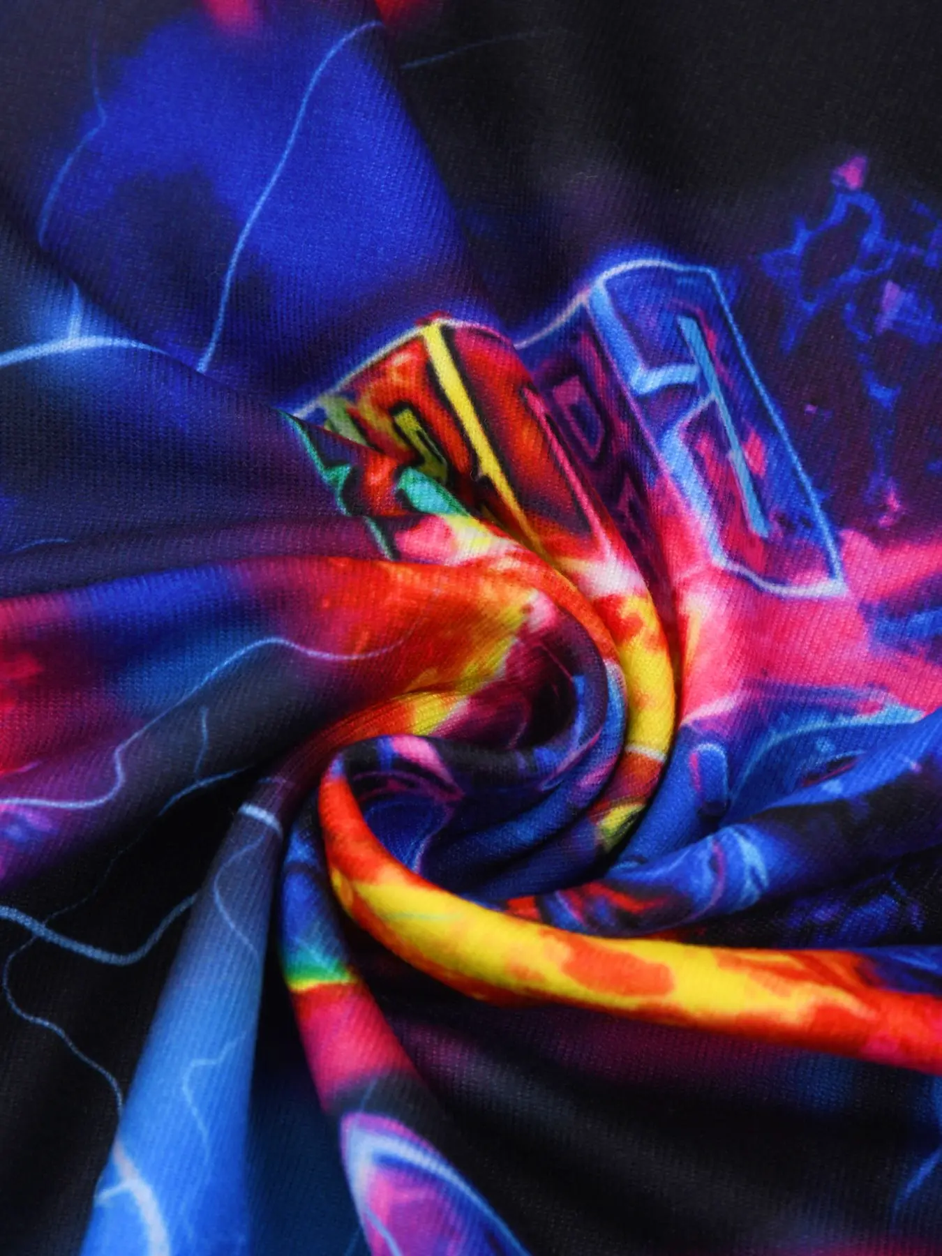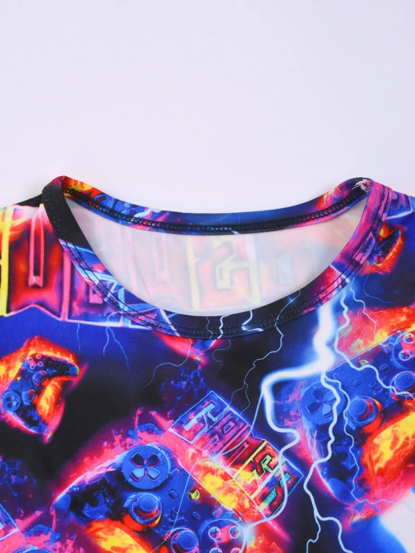 Boy Round Neck Short Sleeve Pajama Set, Cartoon Digital Print, Lightweight Comfortable, Daily Home Wear, 2-Piece Sleepwear