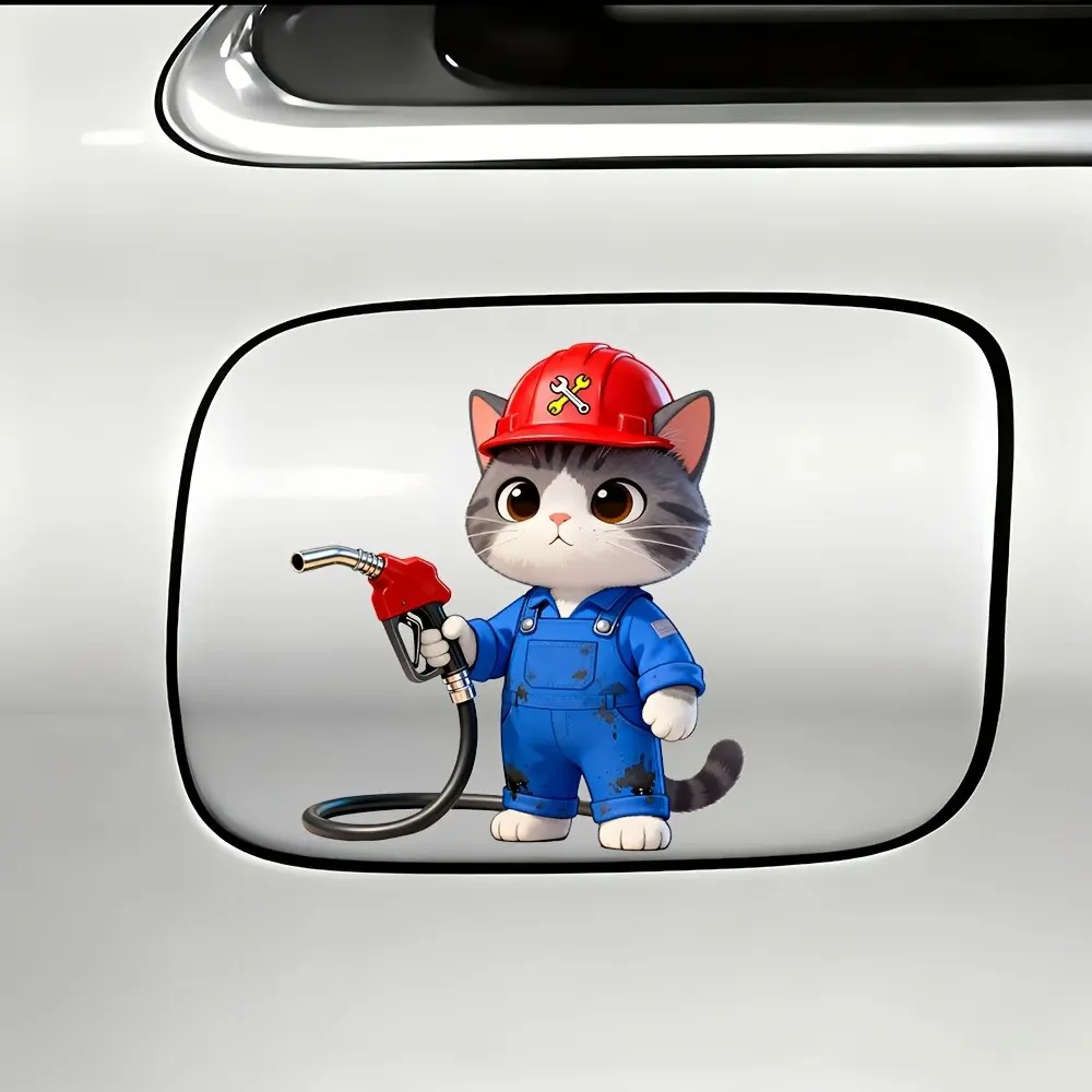 Car Sticker, Cat Design Fuel Tank Decal, PVC Self-Adhesive Removable Waterproof, Car Decoration, Blue Hat Cap Cat, Auto Accessories
