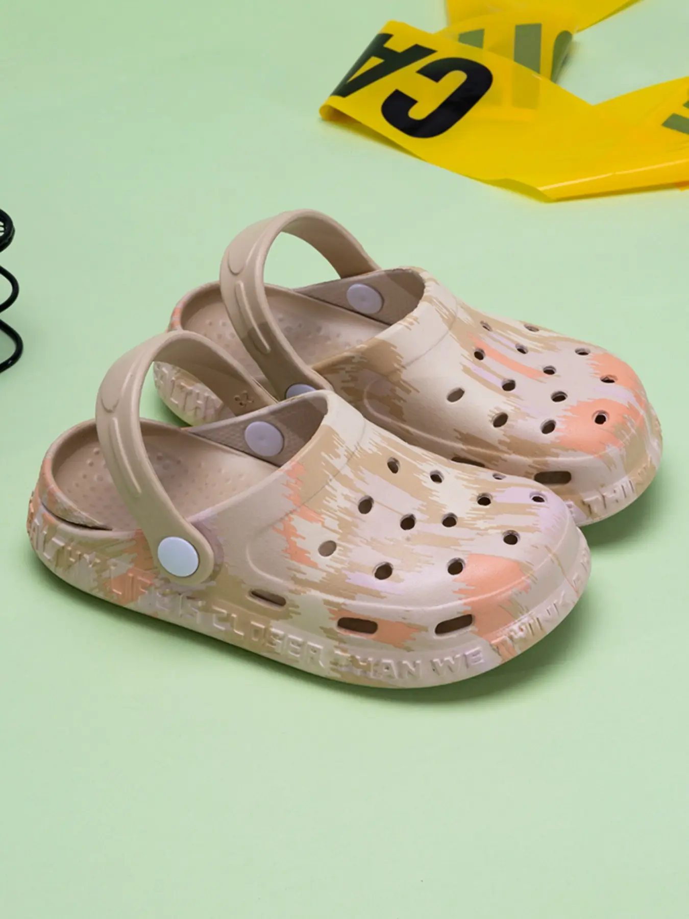 Fashion Thick Sole Anti-Slip Comfortable Mid-Large Kids Enclosed Toe Beach Shoes, Casual Style, Random Print
