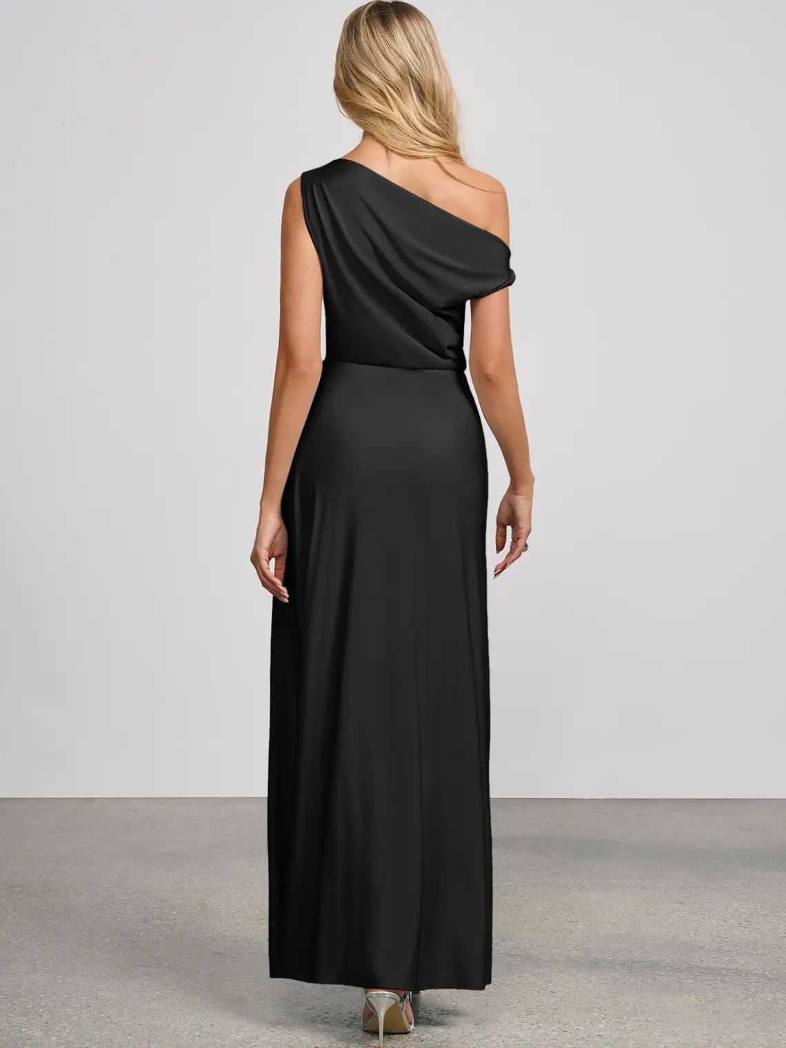 ·Asymmetrical One-Shoulder DesignHighlights the neckline, adding a touch of elegance. The soft ruched waist flatters the midsection, creating a sleek silhouette.