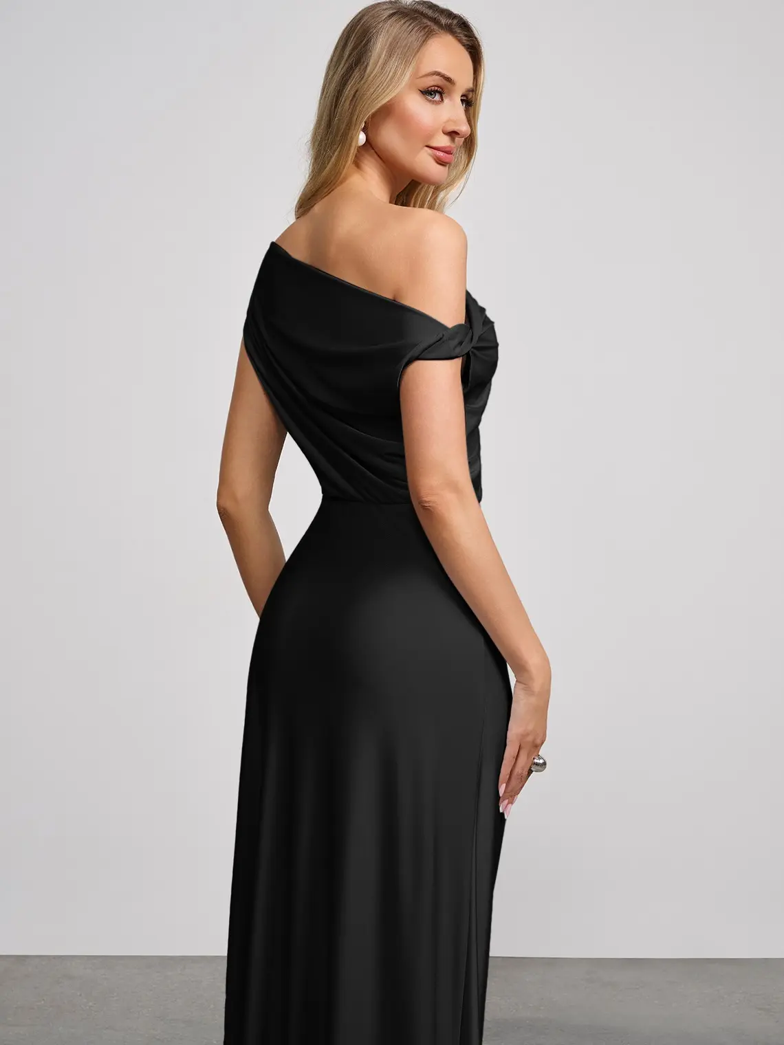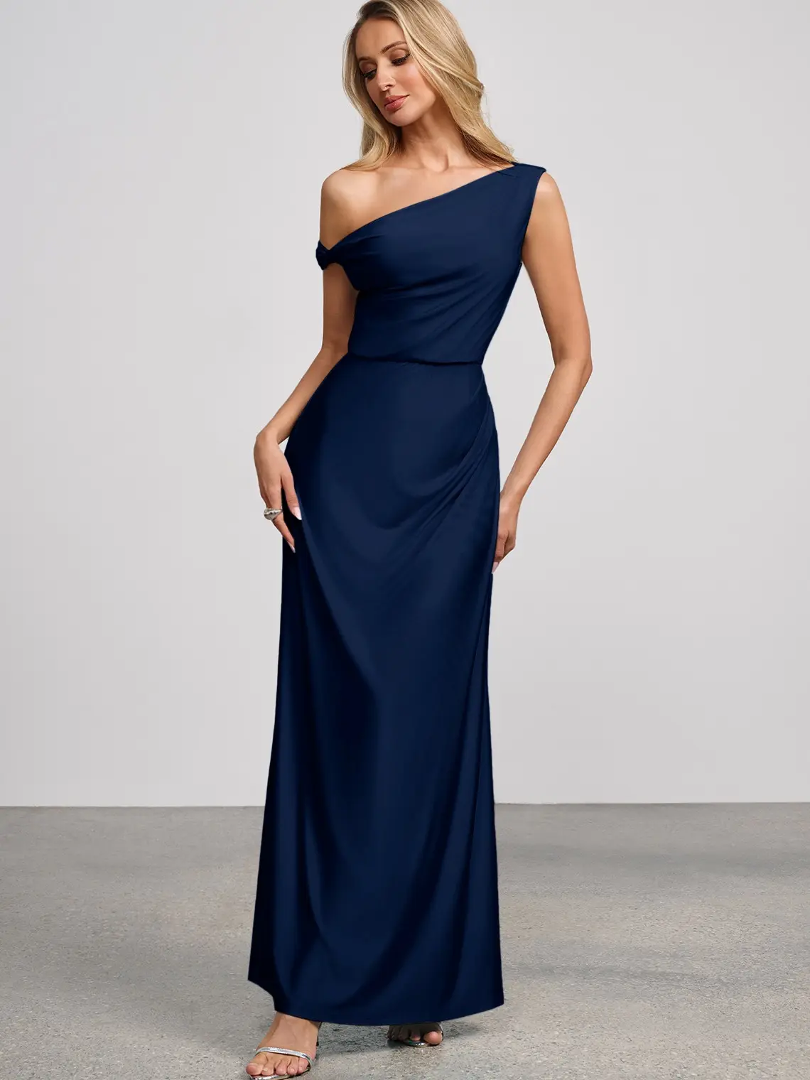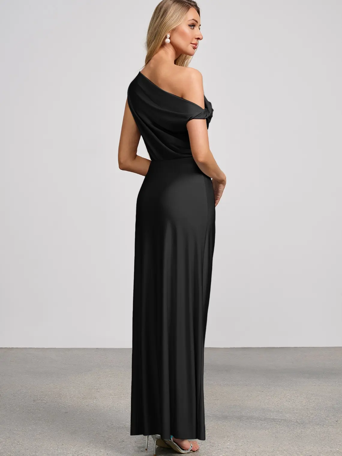 Azazie Elowen One Shoulder Ruched Slimming Mermaid Elegant Party Knit Maxi Dress