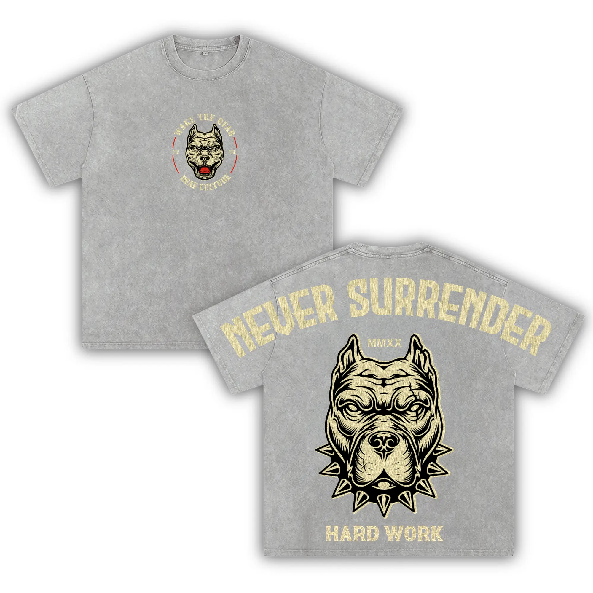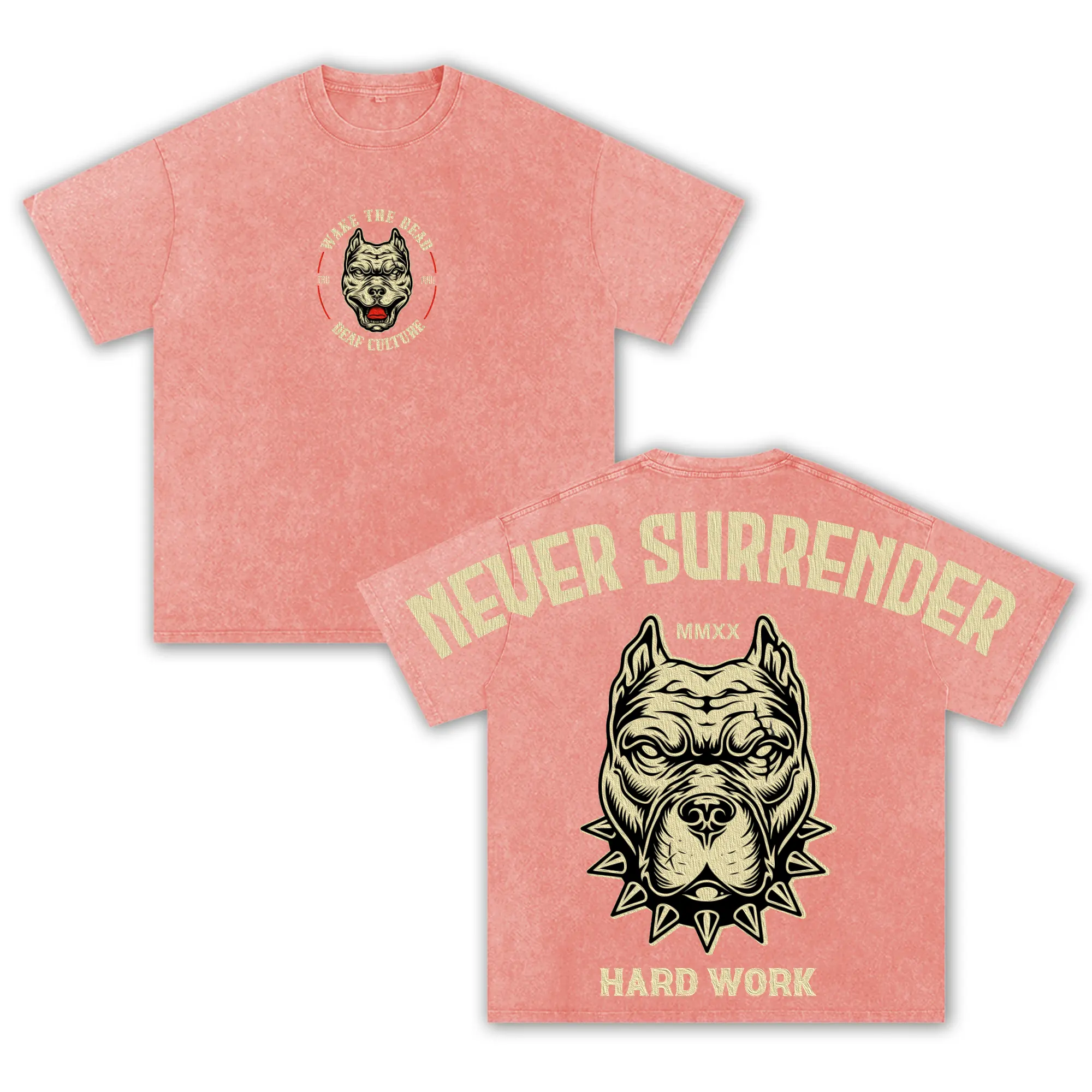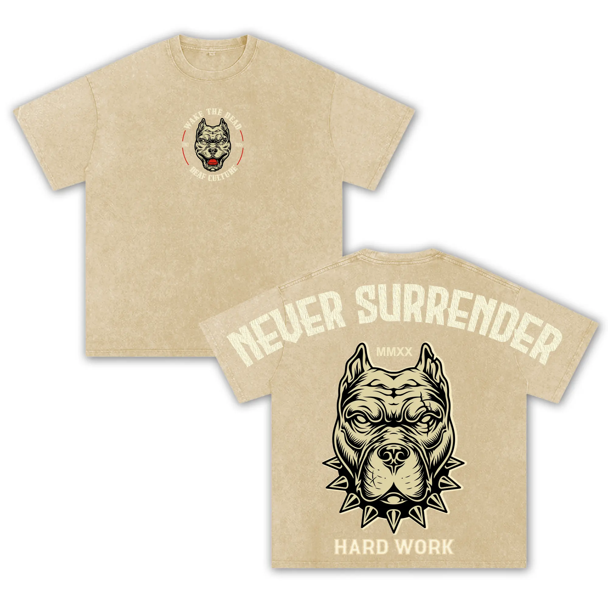 Never Surrender Oversized Washed T-Shirt, Pitbull Graphic Tee, Gym Motivation Workout Shirt, Bodybuilding Pump Cover Streetwear Men