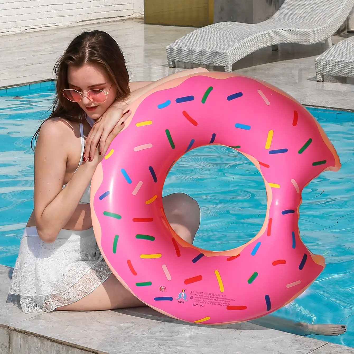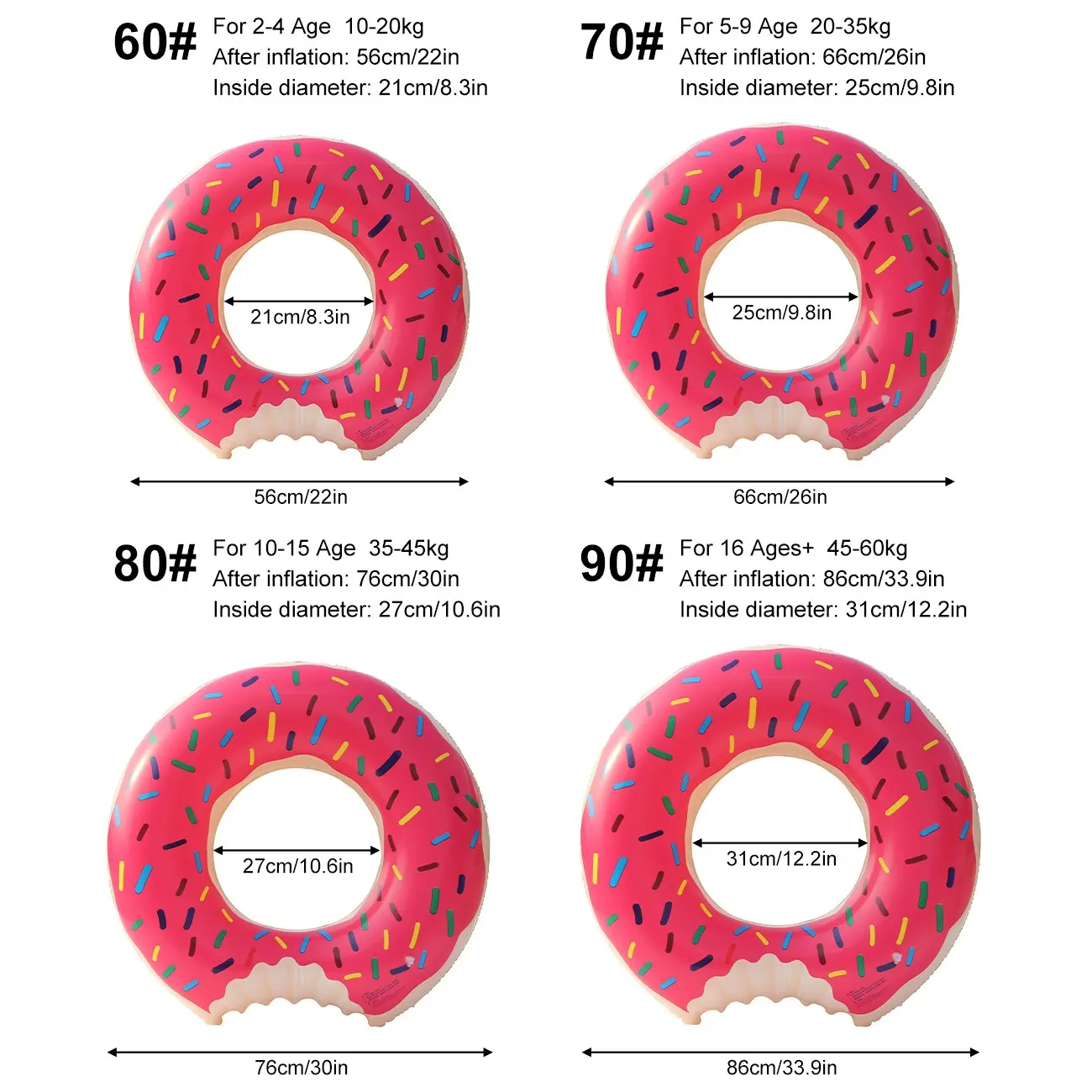 【Fun Design】: Donut-shaped swim ring adds a playful touch to summer pool parties and beach outings.
