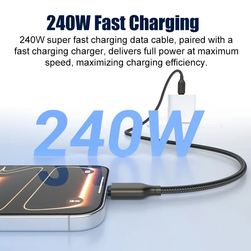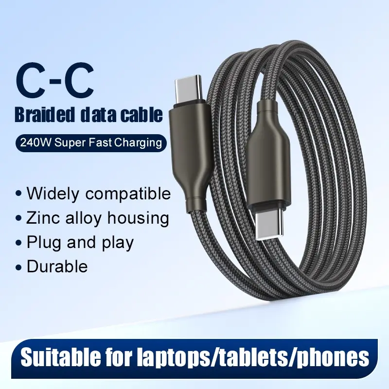 240w Super Fast Charging Cable, Type-C to Type-C, Data Transfer, Car Charger, Compatible with Apple, Android, Huawei, Xiaomi, Samsung, Oneplus, Vivo, Oppo