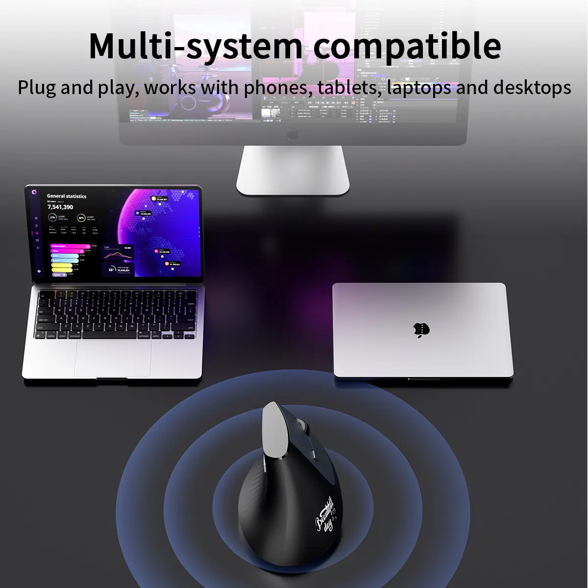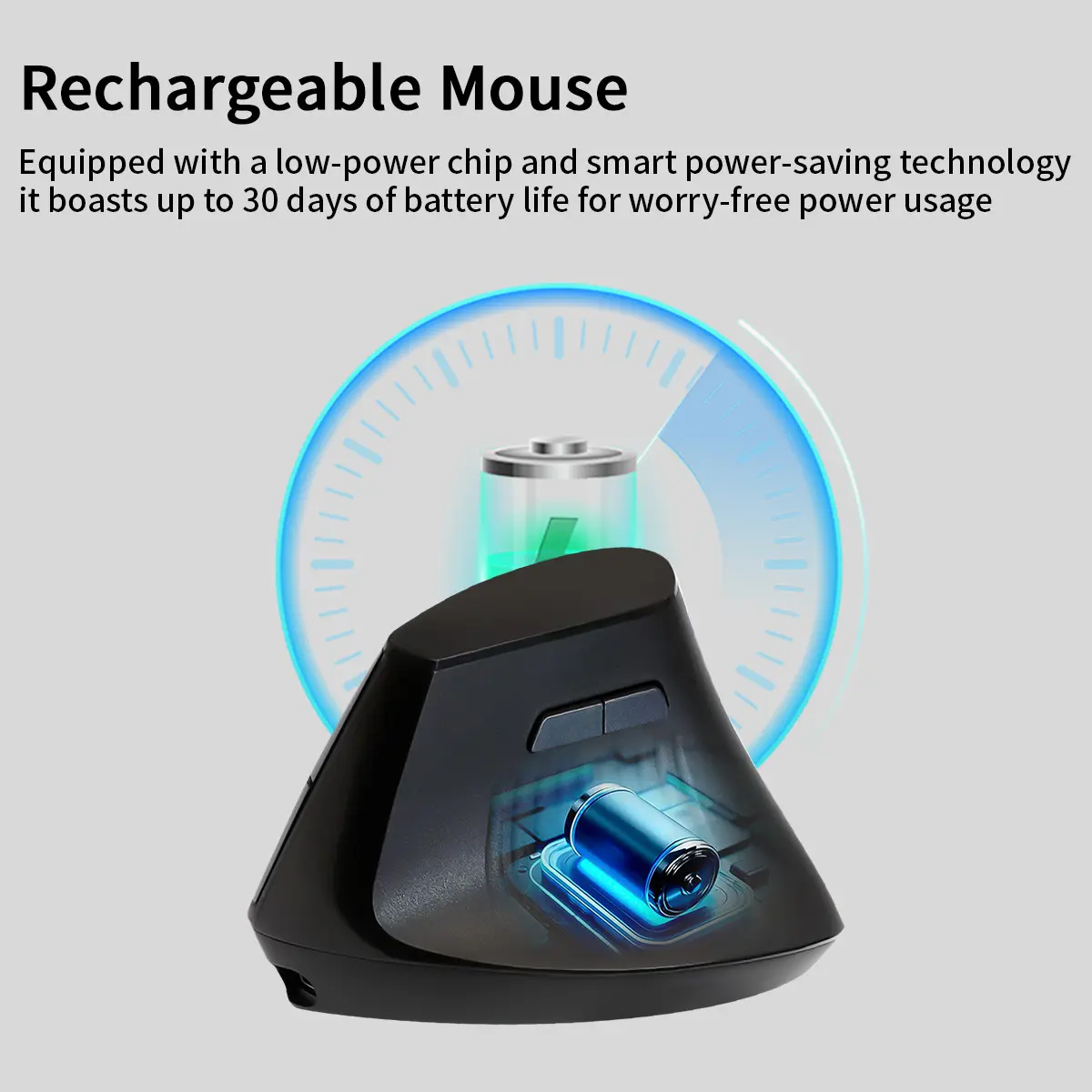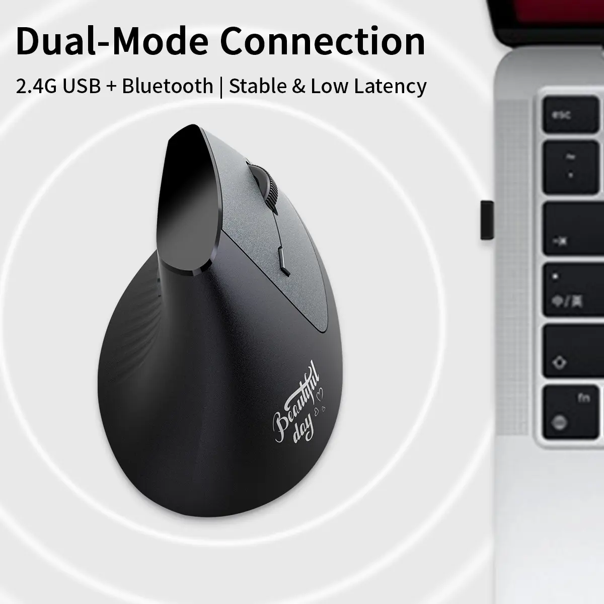 Mofii M11 Dual-Mode Rechargeable Vertical Mouse, Ergonomic Wireless Office Mouse, Classic, Wrist Support, Universal for Tablets Laptops Desktops