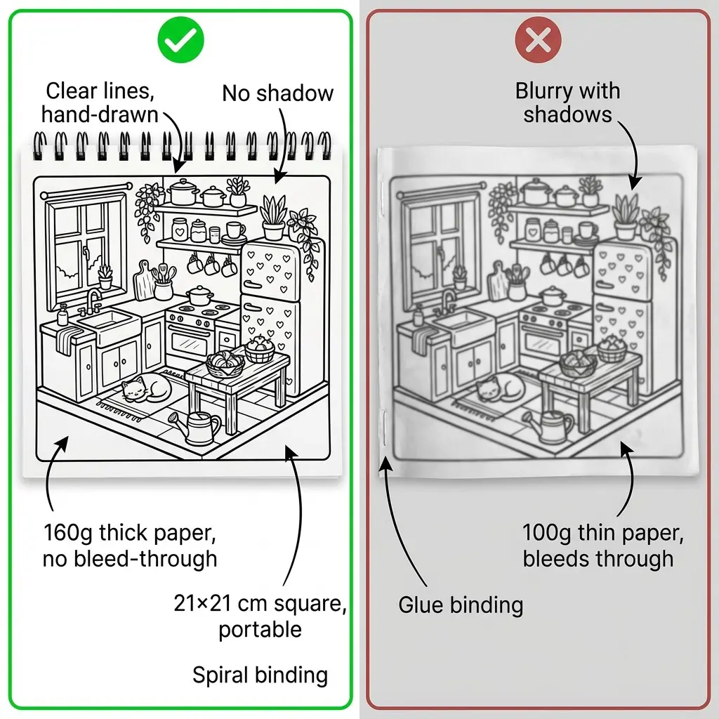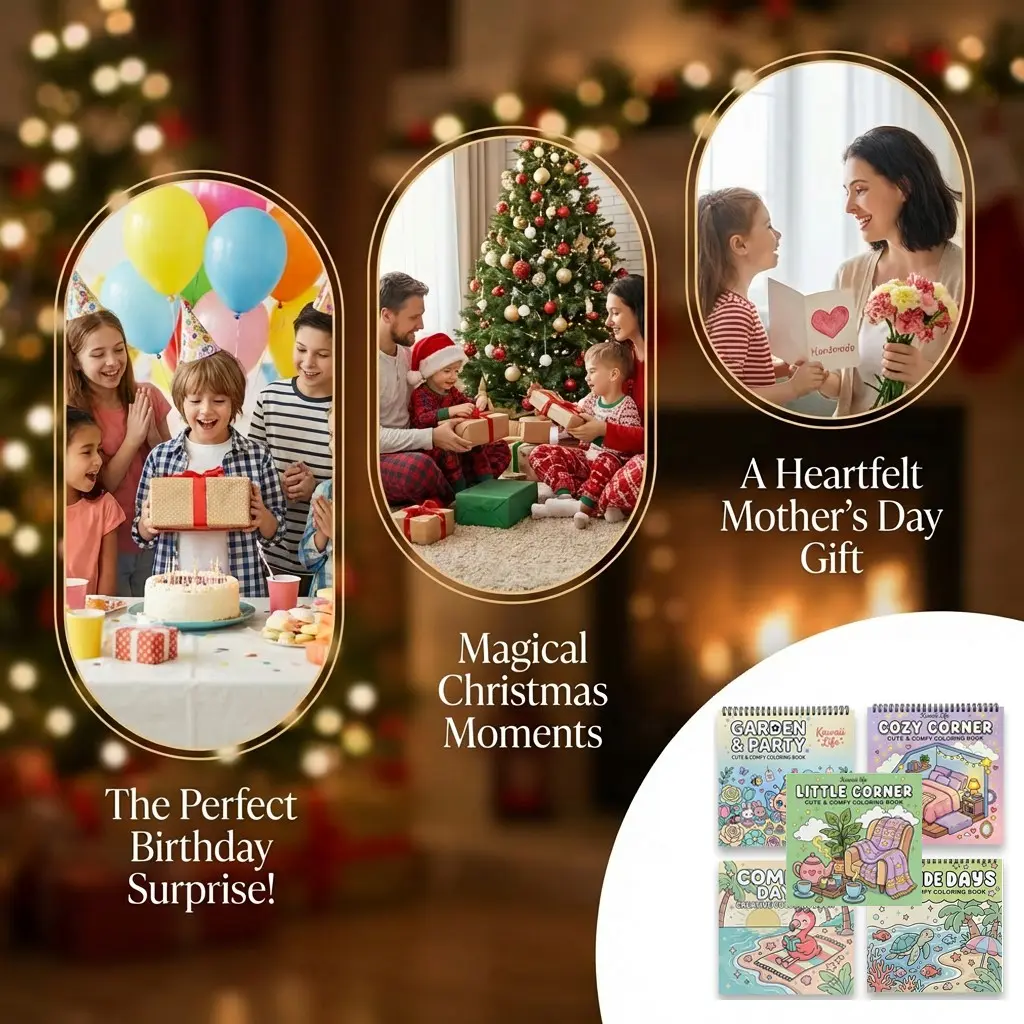 Kawaii Coloring Book - 5pcs Garden, Seaside days, Cozy Corner & Comfy Days Themes - Exquisite Illustrations with Clear Lines, Super-Sensitive Opaque Paper - Stress Relief, Relaxation, Fun for Teens, Adults & Seniors - Perfect Gift for Birthdays, Holidays