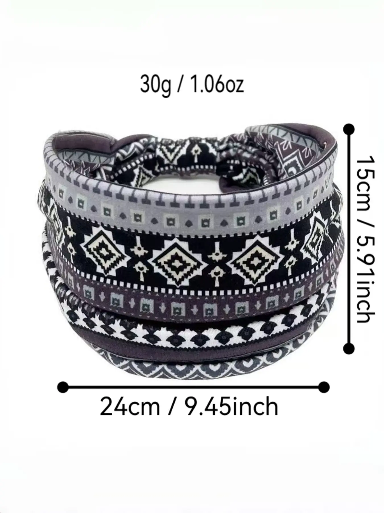 4 Pcs Boho Ethnic Print Wide Elastic Hair Bands, Vintage Aztec Geometric Design, High Stretch Anti-Slip, Multi-Use for Daily/yoga/sport/washing