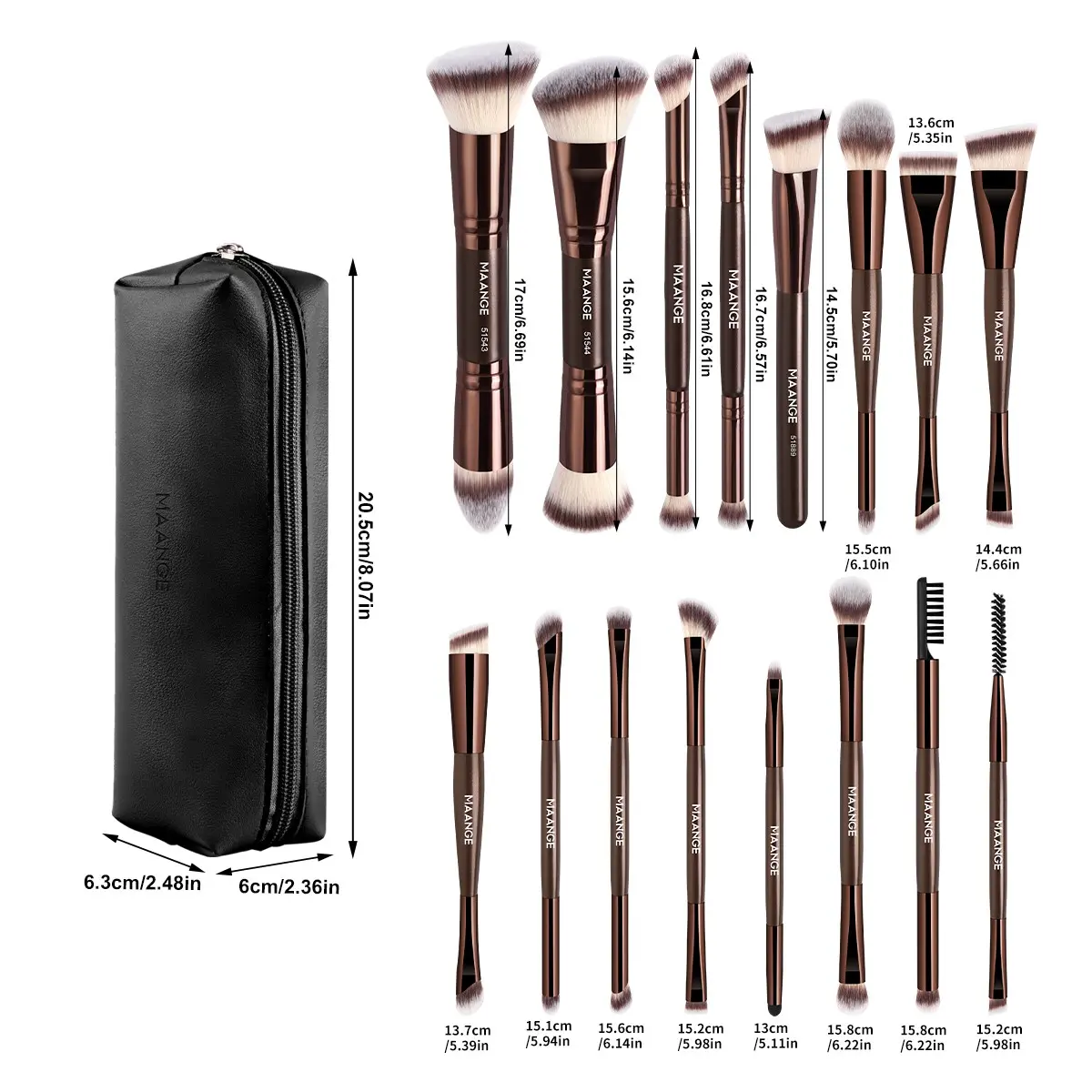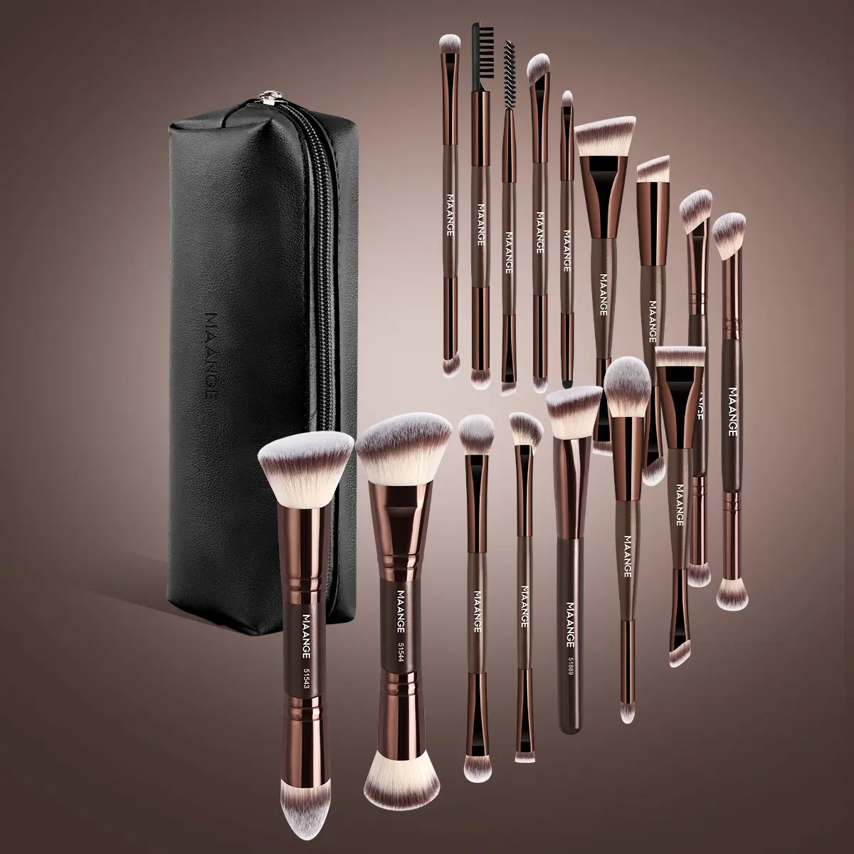 Maange 17-Piece Makeup Brush Set with 16 Brushes + Cosmetic Bag, Foundation Brush, Concealer Brush, Blush Brush, Eyeliner Brush
