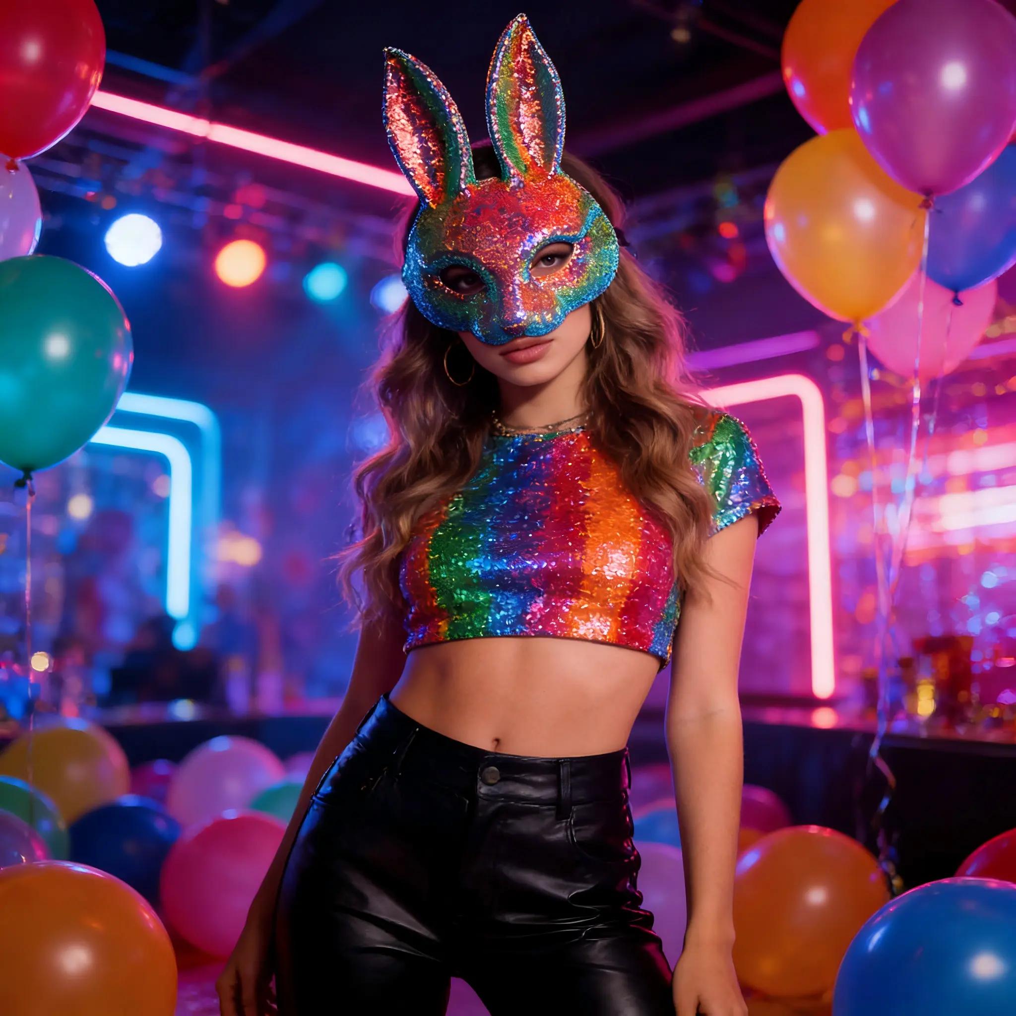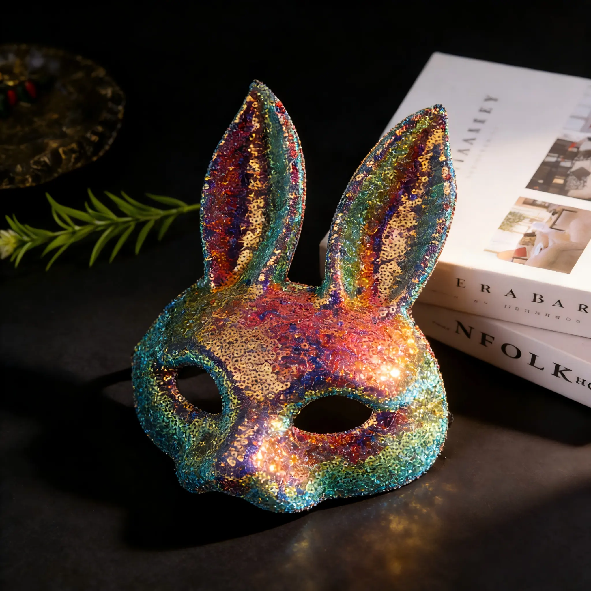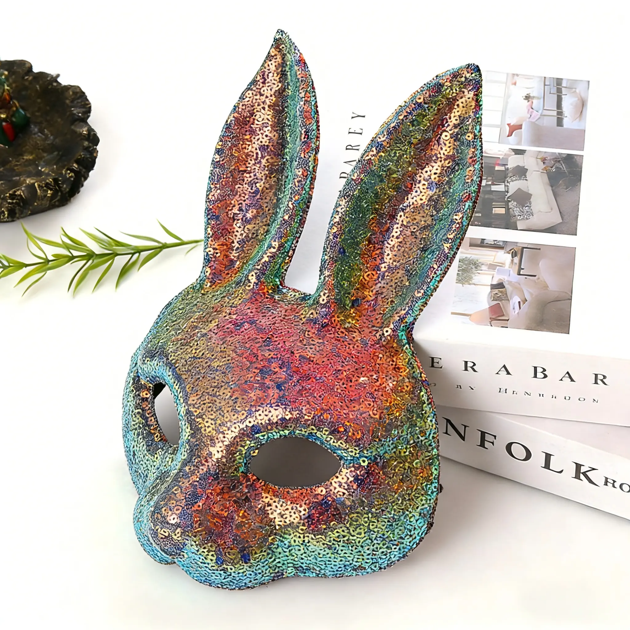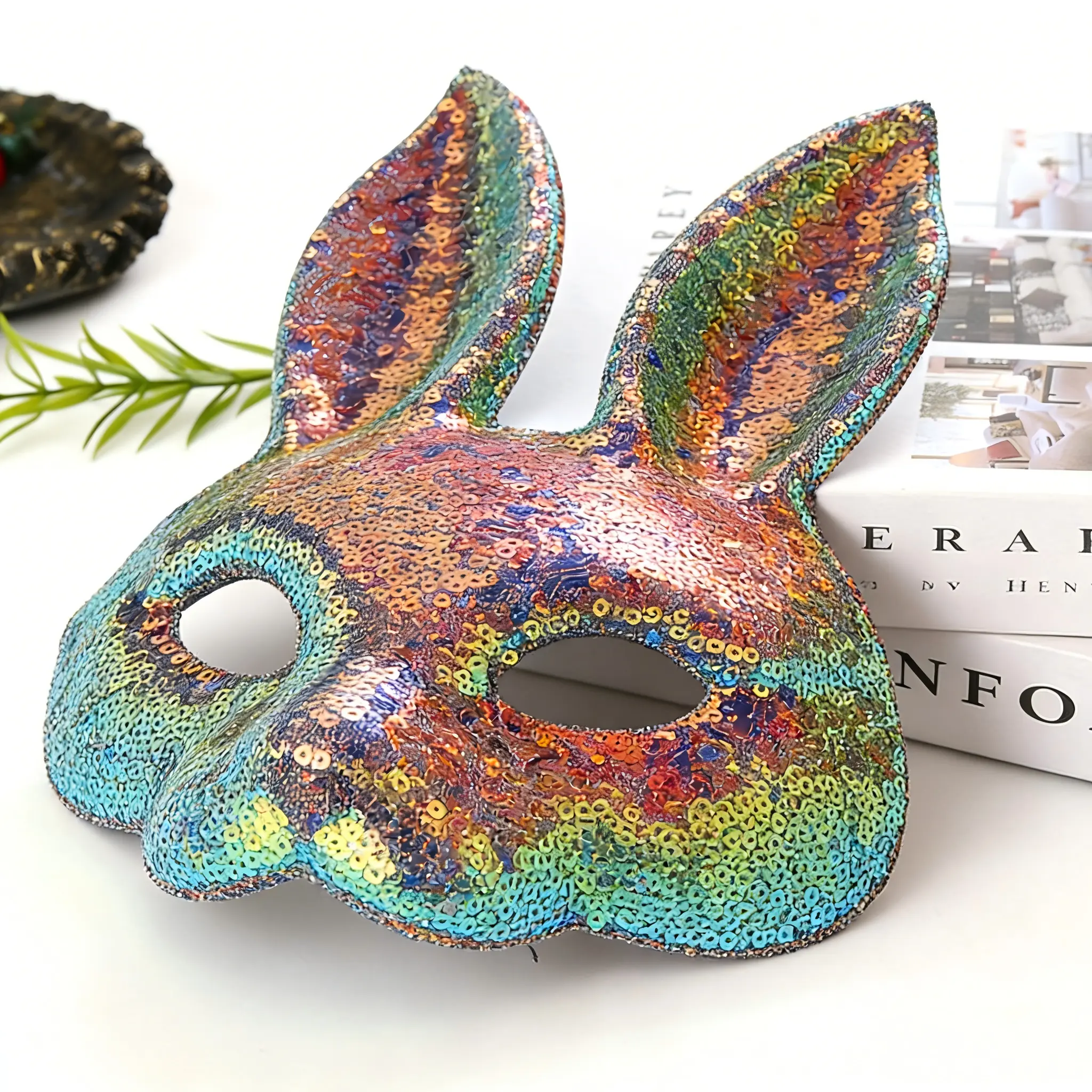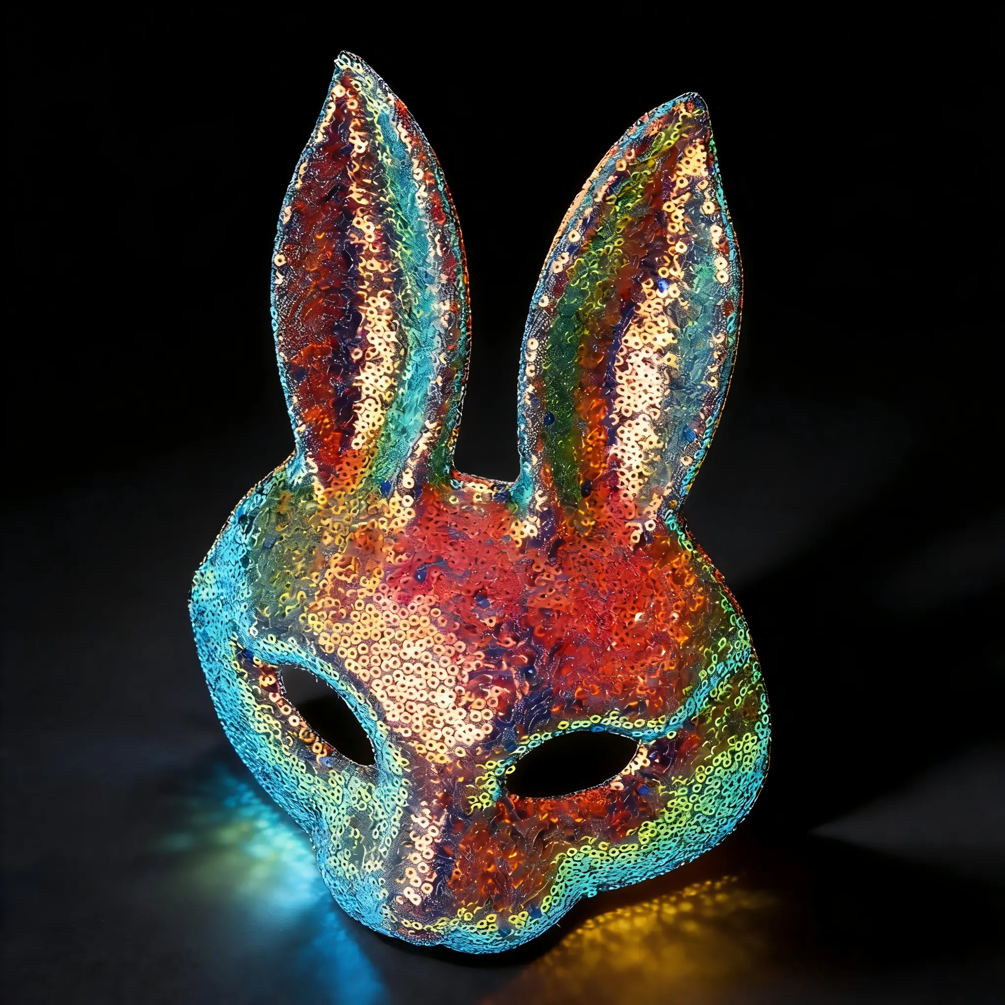Wear this mask to bring a spark of fun to your celebrations. It's a charming accessory that complements any costume. Perfect for those looking to add a bit of sparkle and charm to their festive looks. Enjoy the festivities with this delightful bunny rabbit mask.