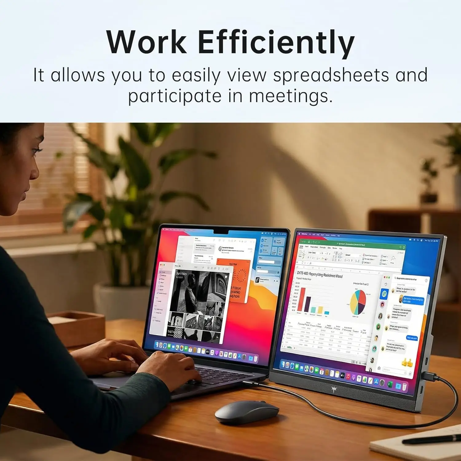 KTC Portable Monitor 15.6" FHD 1080P 60Hz Travel Monitor for Laptop, MacBook, Switch, PS5, Xbox, HDMI USB C, HDR10,VA Slim Second Screen with Built-in Speakers