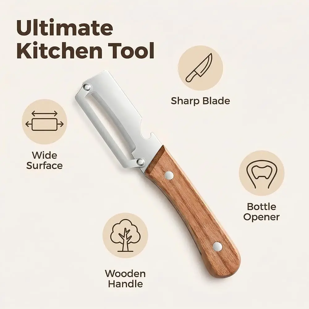 【Multi-Functionality】: Combines peeler and bottle opener in one tool, perfect for kitchen prep and camping needs.