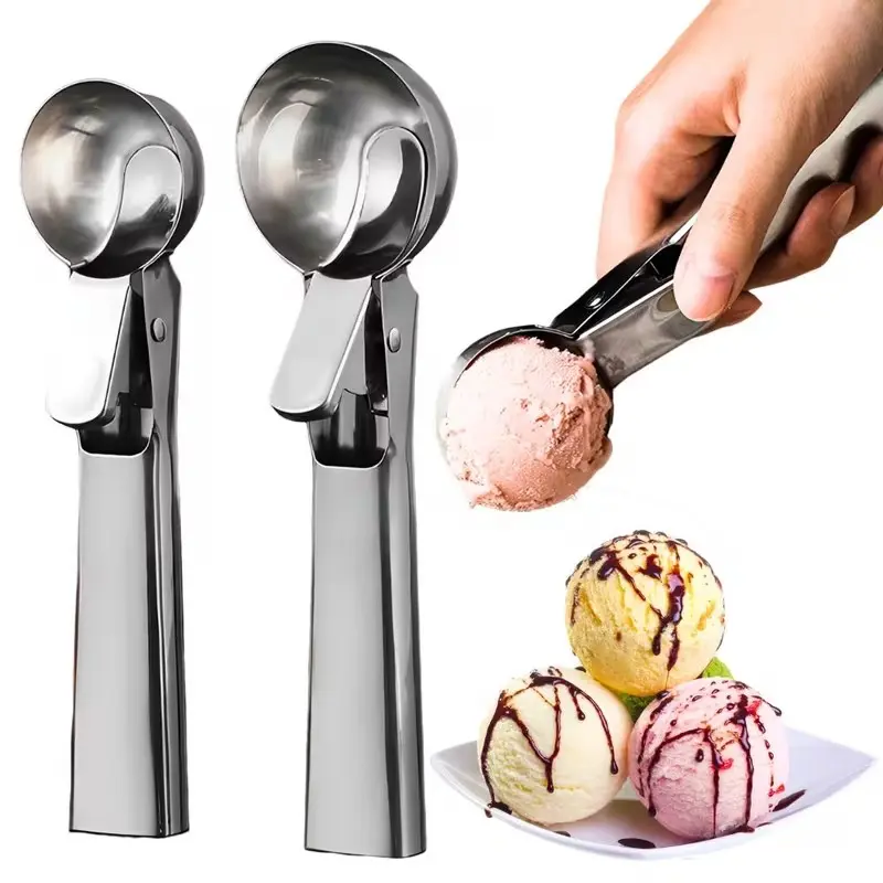 3 piece Food-Grade Stainless Steel Ice Cream Scoop Baller, Dual-Purpose for Commercial & Home Use, Special Tool for Watermelon Fruit Ice Cream, Professional Design Comfortable Grip, Kitchen Baking Dessert Shop Tool
