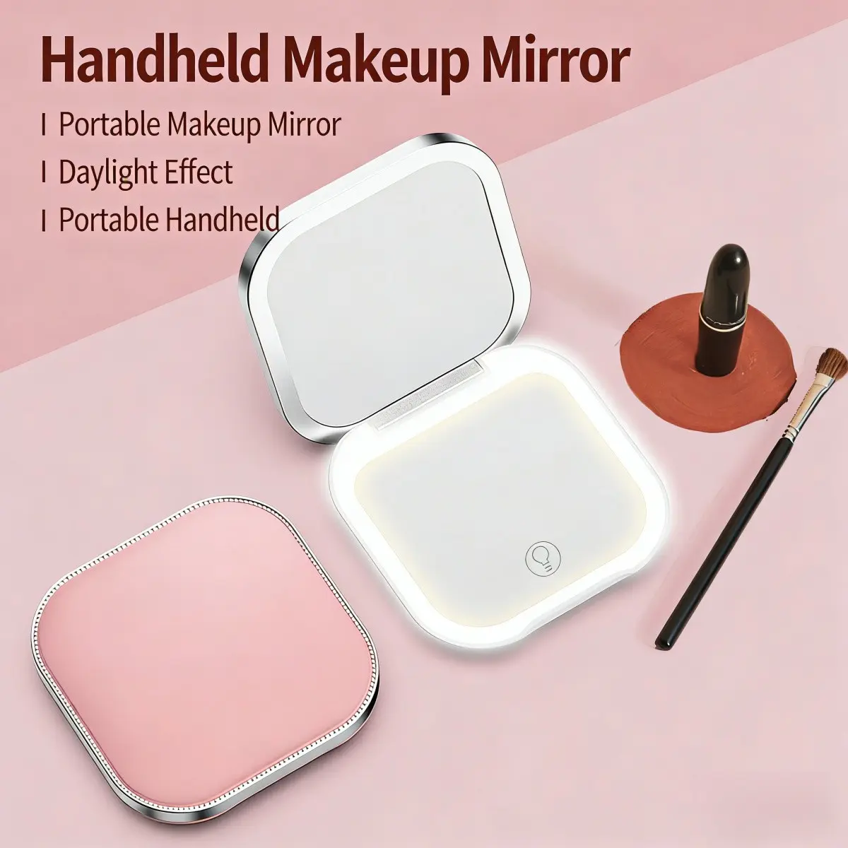 Portable LED Makeup Mirror, Single-Sided with Light, Three-Color Light, Foldable Handheld USB Charging Mini Makeup Mirror, Compact Desktop Vanity Mirror