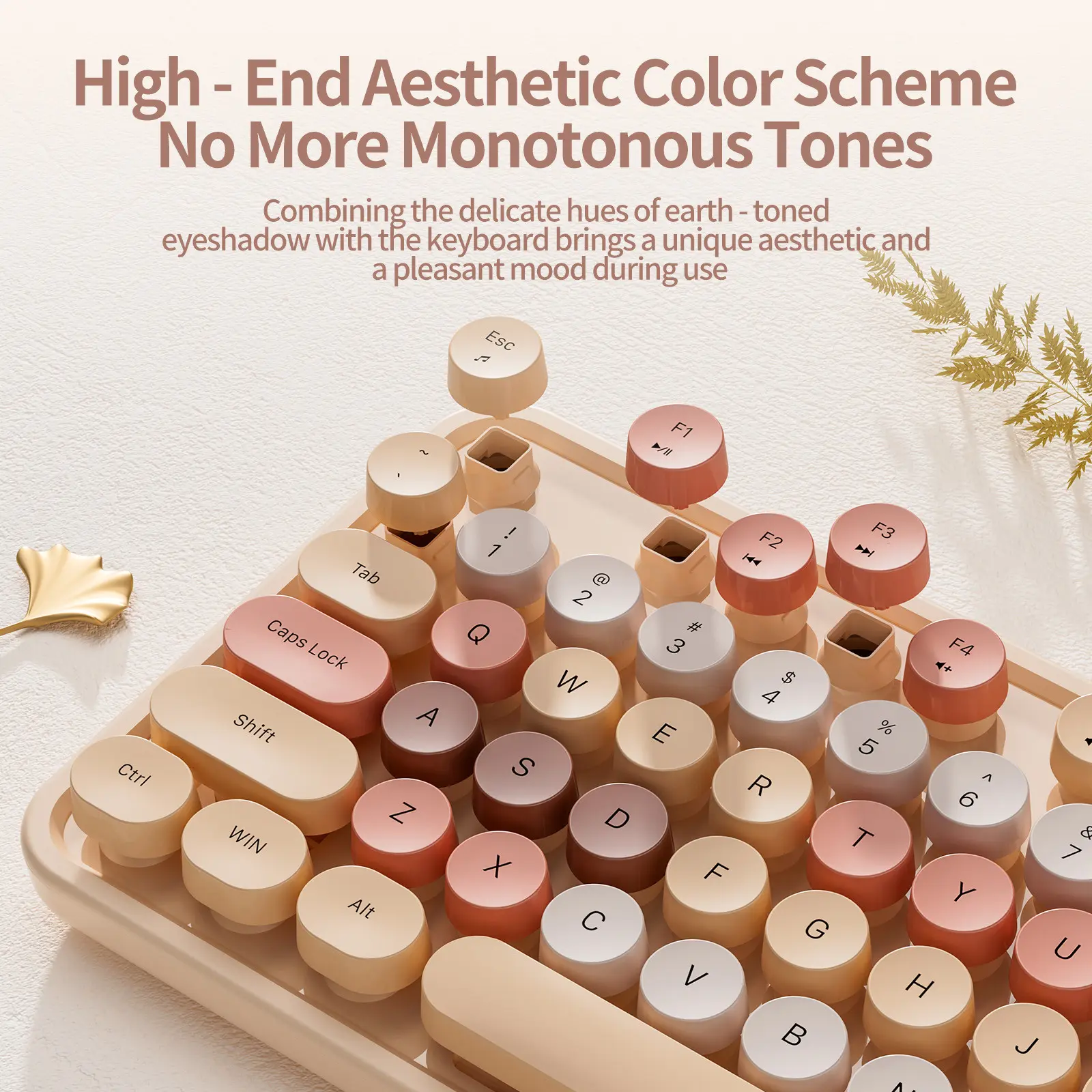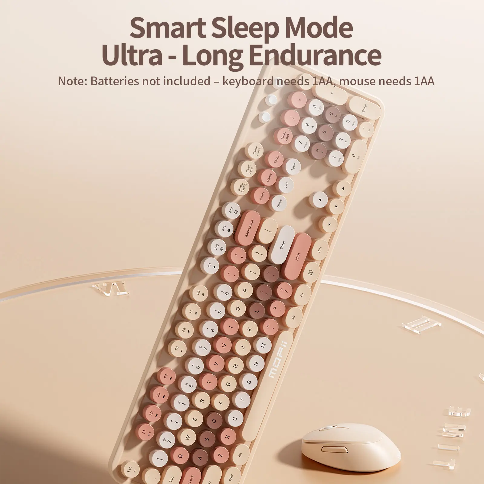 5. MOFii 1 Set Wireless Keyboard and Mouse Combo, Milk Tea Color Retro Round Keys, 2.4G Plug and Play Office Keyboard Mouse, Compatible with Laptop & Desktop, US Qwerty (Battery Not Included)