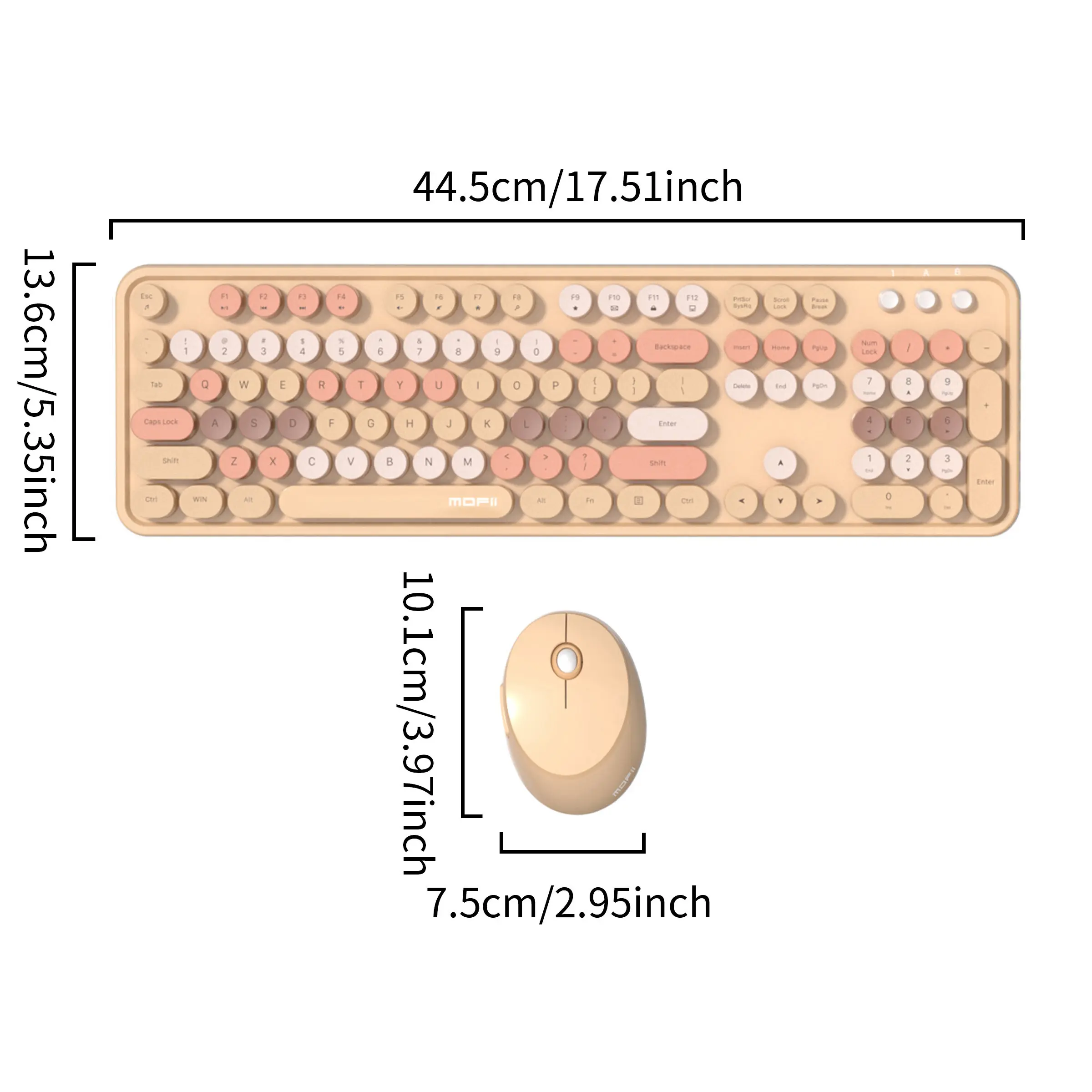 MOFii 1 Set Wireless Keyboard and Mouse Combo, Milk Tea Color Retro Round Keys, 2.4G Plug and Play Office Keyboard Mouse, Compatible with Laptop & Desktop, US Qwerty (Battery Not Included)