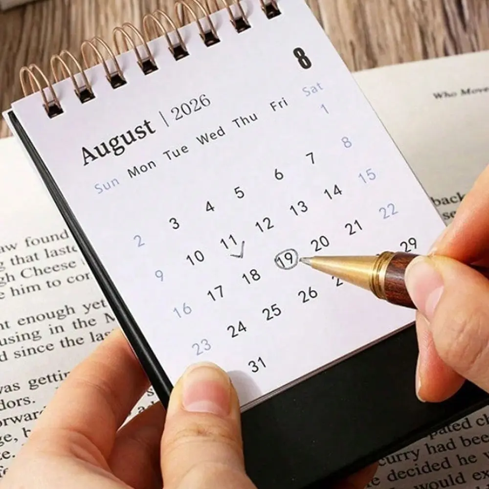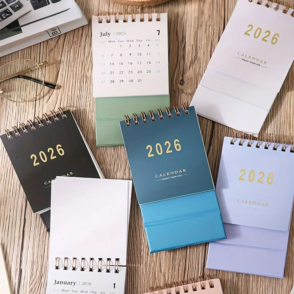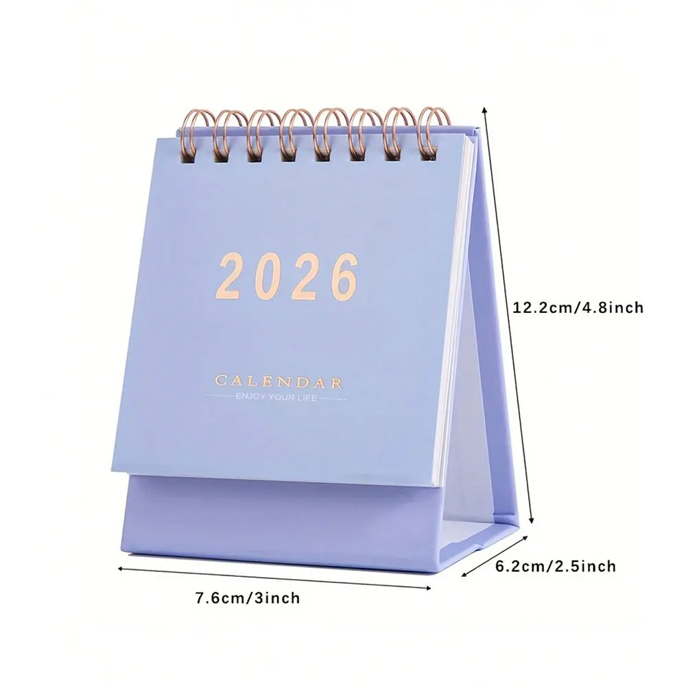 A minimalist mini desktop calendar for 2026, a portable solid color desktop decoration, a mini calendar from July 2025 to December 2026, perfect for back-to-school season, school supplies, school and office desktop decoration, and a gift for friends.