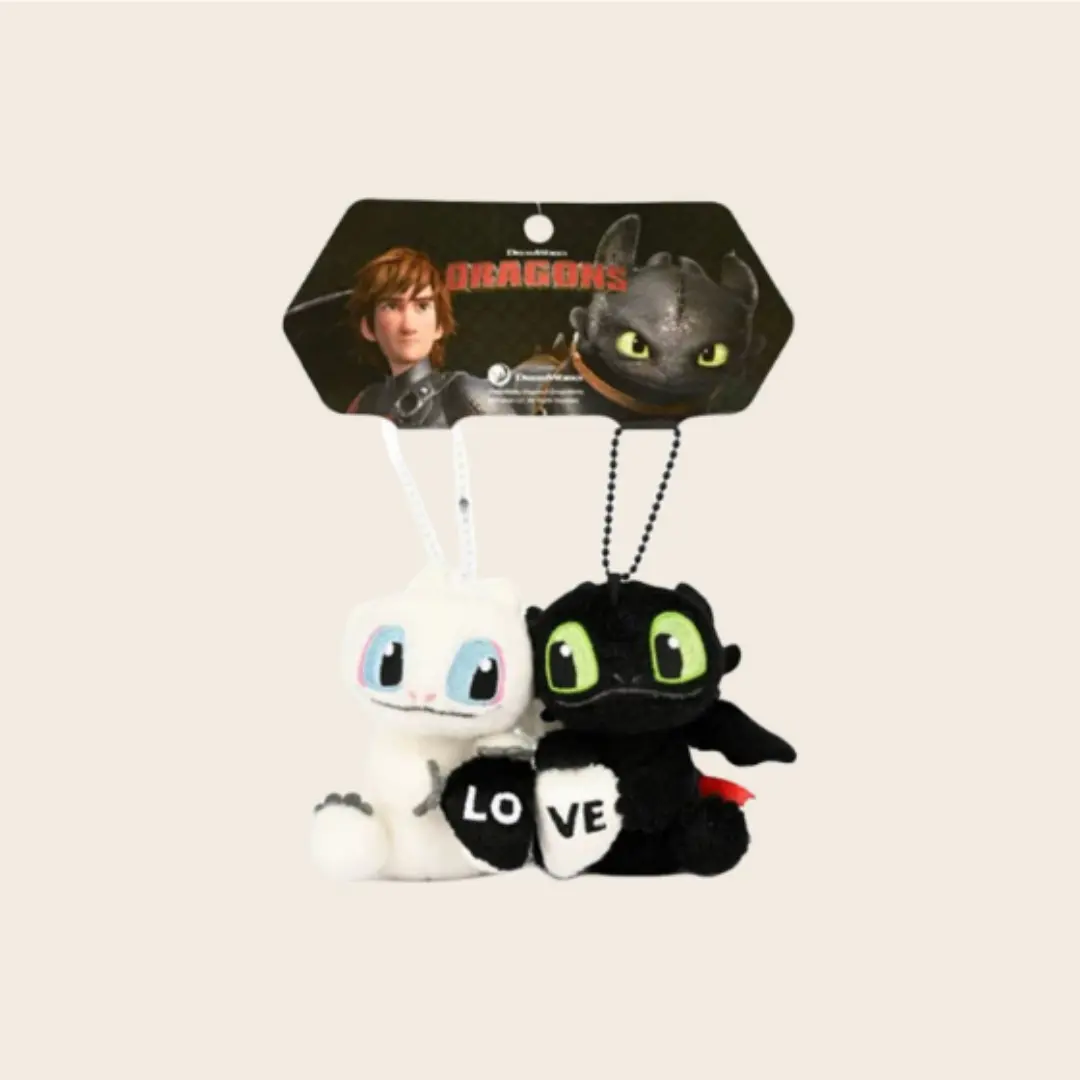 Authentic Collaboration Global Dragon Trainer Toothless Bag Charm,Toothless Love Magnet Hanging Decoration, Valentine's Day Gift, Couple Keychain.One pair (black + white)