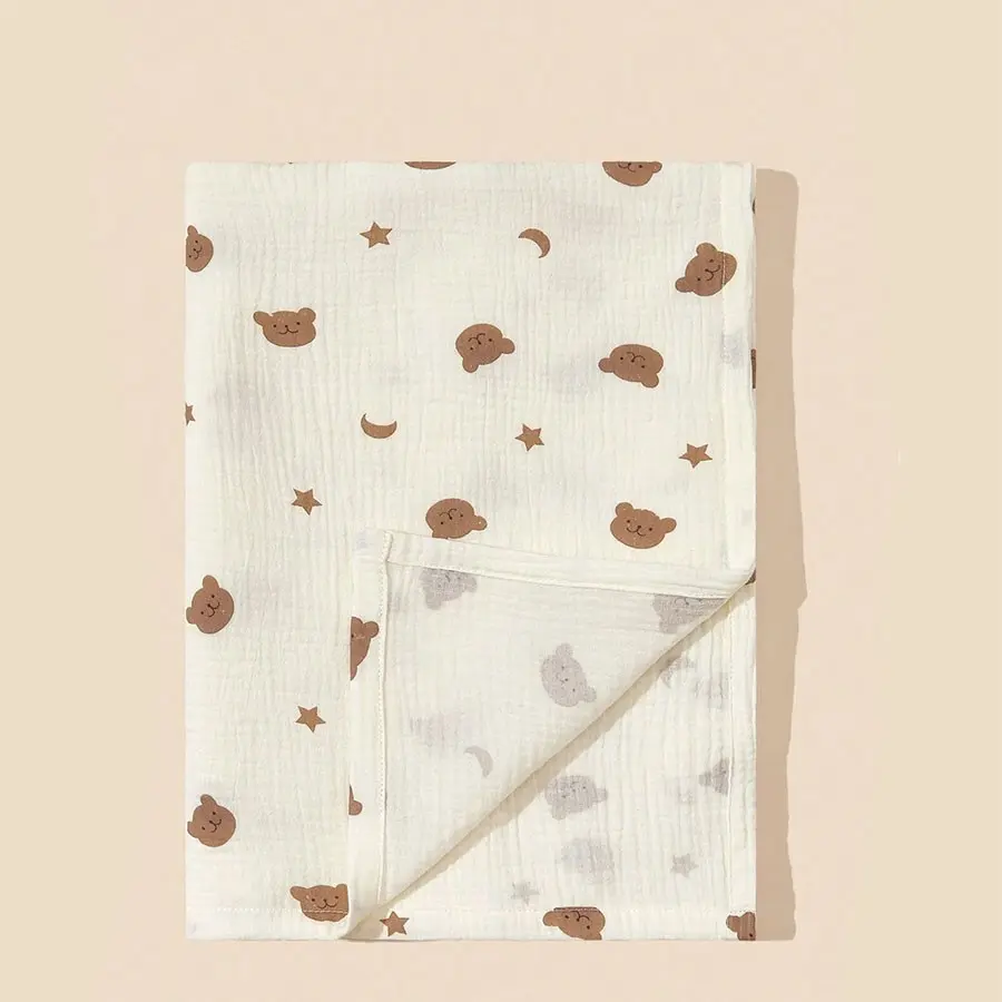1pc Baby Muslin Blanket, Newborn Multi-Functional Muslin Wrap, Cute Cartoon Print, Can Be Used as Cover, Bath Towel, Stroller Cover, Gift Idea