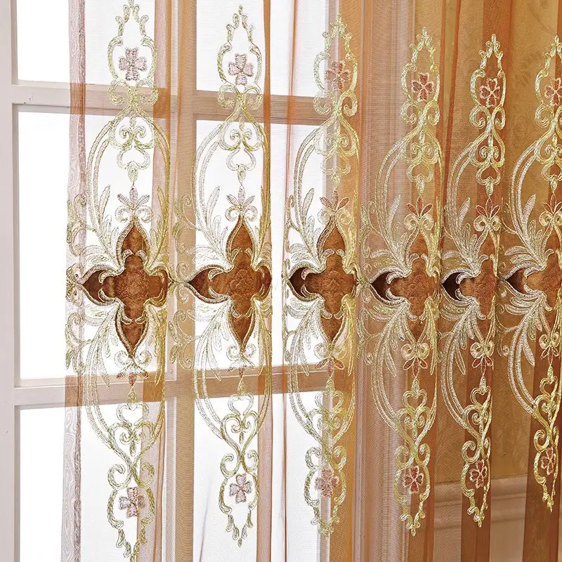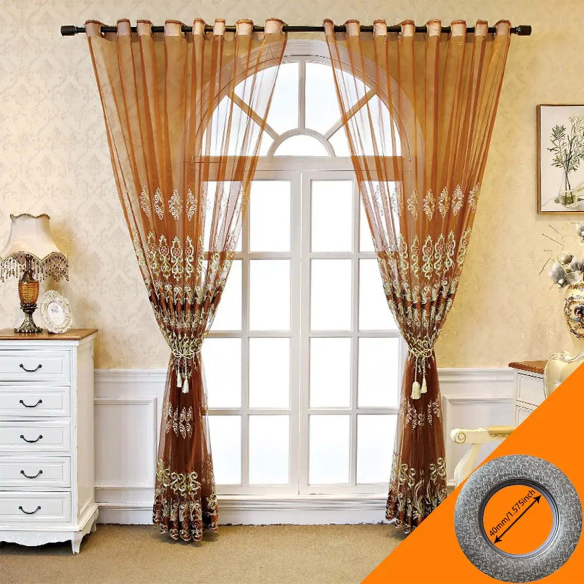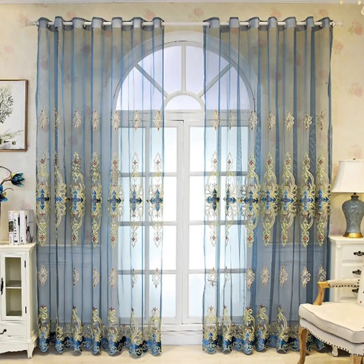 5. 2pcs European Heavy Embroidery Sheer Curtains, Living Room Arched Floor-To-Ceiling Window, Vintage Style Punch Hole Balcony Curtain