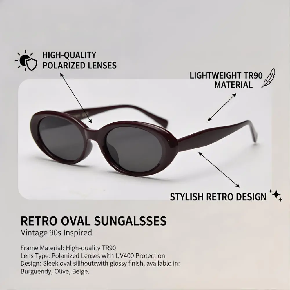 Oval Sunglasses Unisex Transparent Frame, Retro Polarized UV400 Lightweight Multi-Color for Daily Wear Outdoor Casual