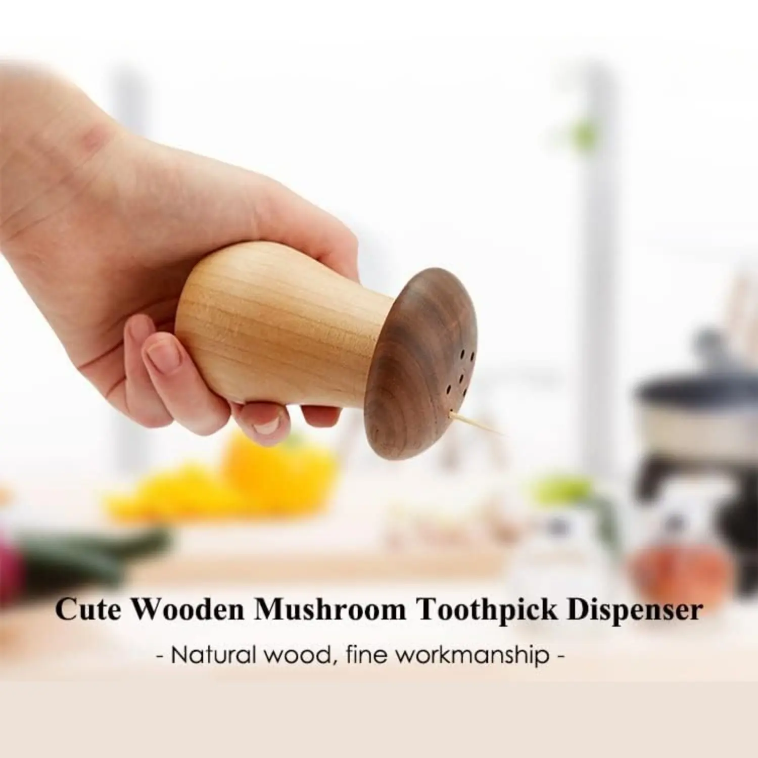 HomeDailyEss Cute Wooden Mushroom Toothpick Dispenser Wooden Tooth Pick Dispenser For Toothpick Holder Home Decor