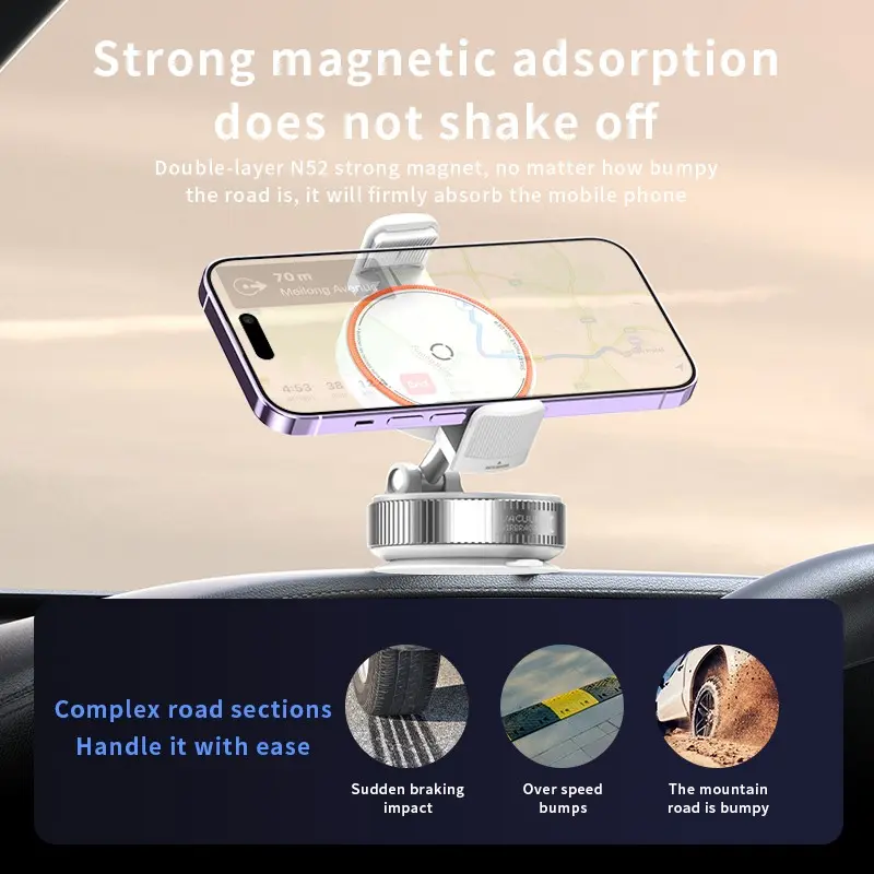 360° Adjustable Vacuum Phone Holder, One-Step Lock, Sticks to All Materials, Hands-Free Mount for Car/gym/mirror, Universal Mobile Accessory