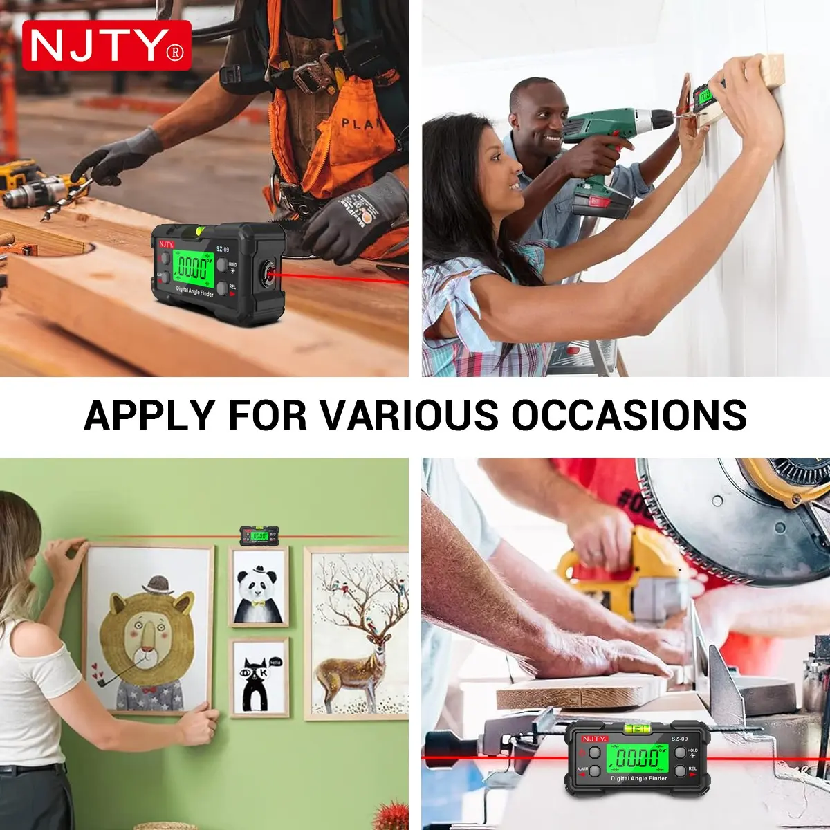 Digital Laser Angle Gauge - High Precision Inclinometer & Level Box with Dual-Side Laser Lines | Magnetic V-Groove Base | Rechargeable Type-C | Backlit LCD for Woodworking, Construction, and Renovation