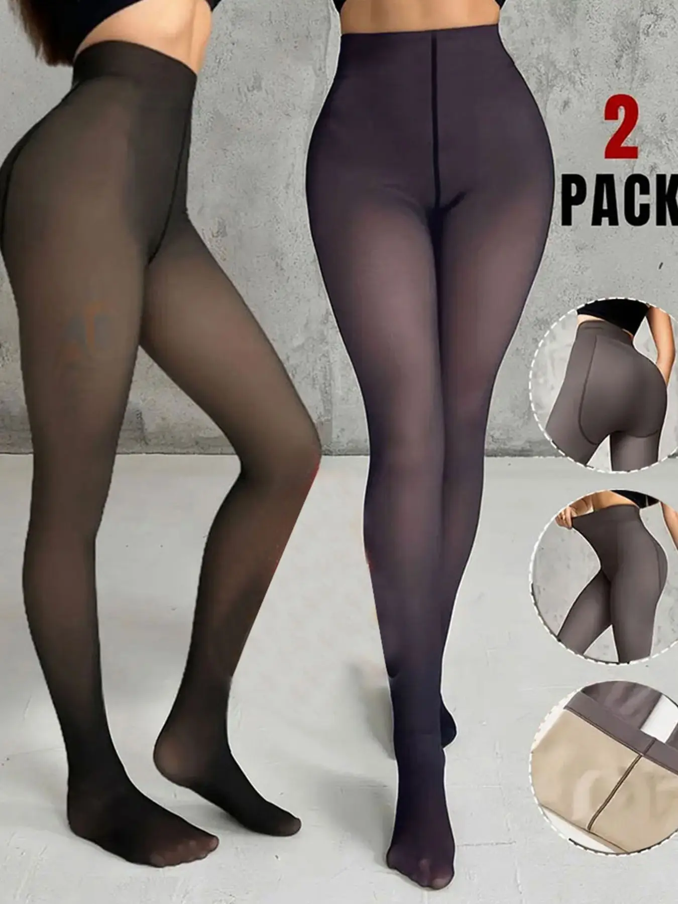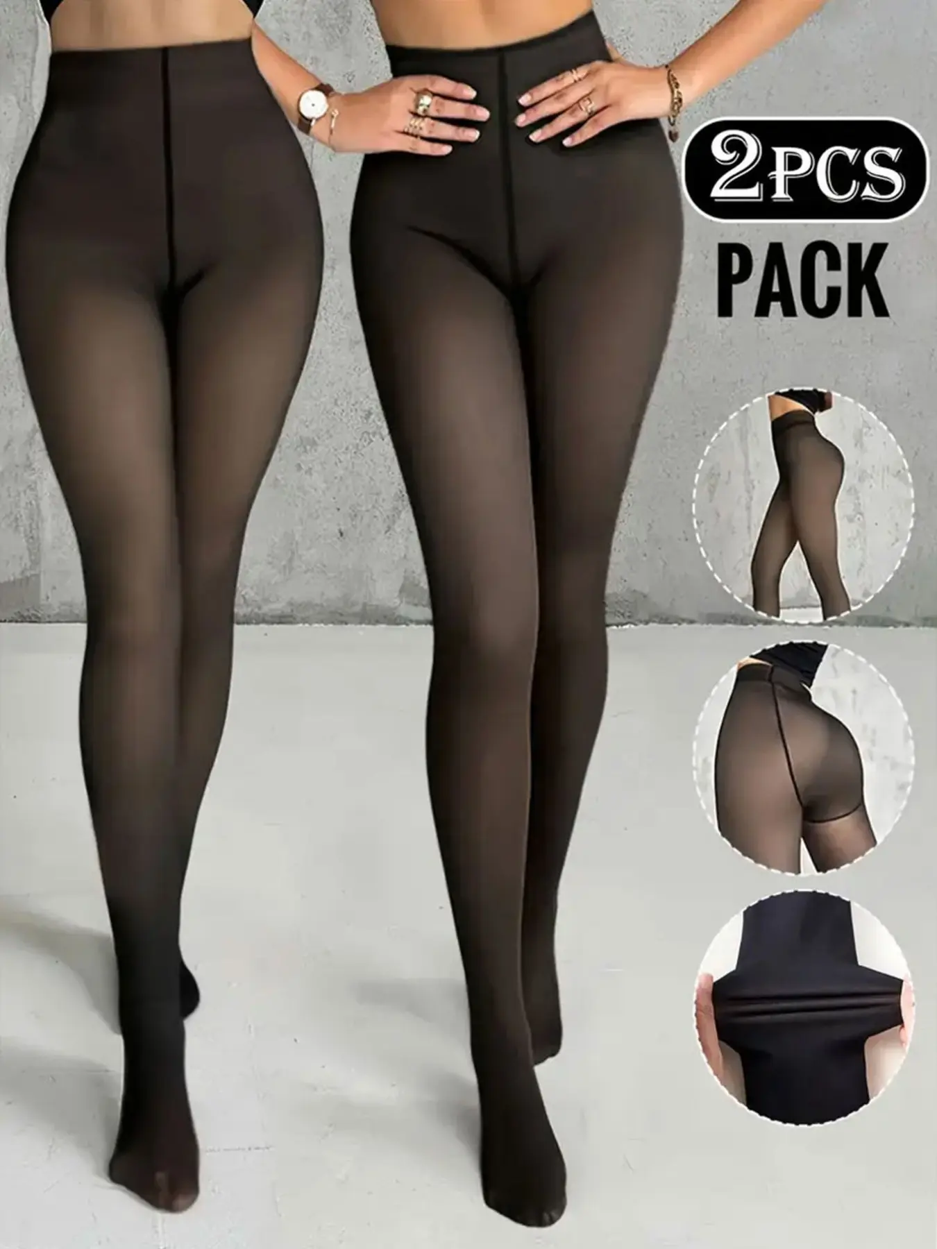 2 Pairs Women's Semi-Sheer Warm Fitted Tights, Soft Comfortable Elastic, Plain Color, Ideal for Underwear, Sleepwear, Casual Wear, Fall Winter