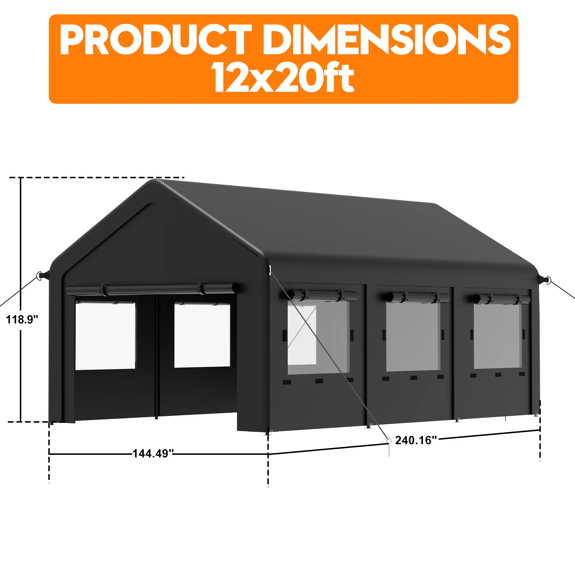 MNLR 12' x 20' Carport Canopy provides practical outdoor coverage for cars, trucks, SUVs, boats, tools, and seasonal equipment. Designed for everyday outdoor use, this portable garage works well as a vehicle shelter, equipment cover, or general-purpose outdoor canopy.